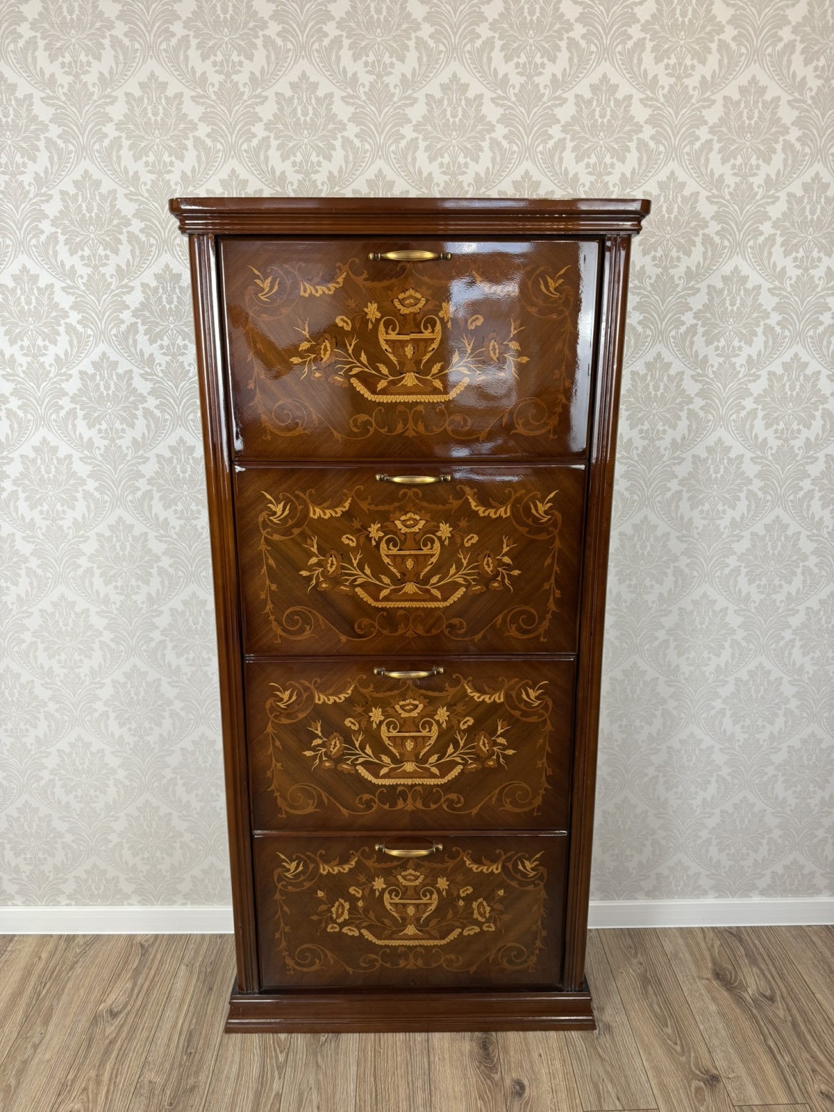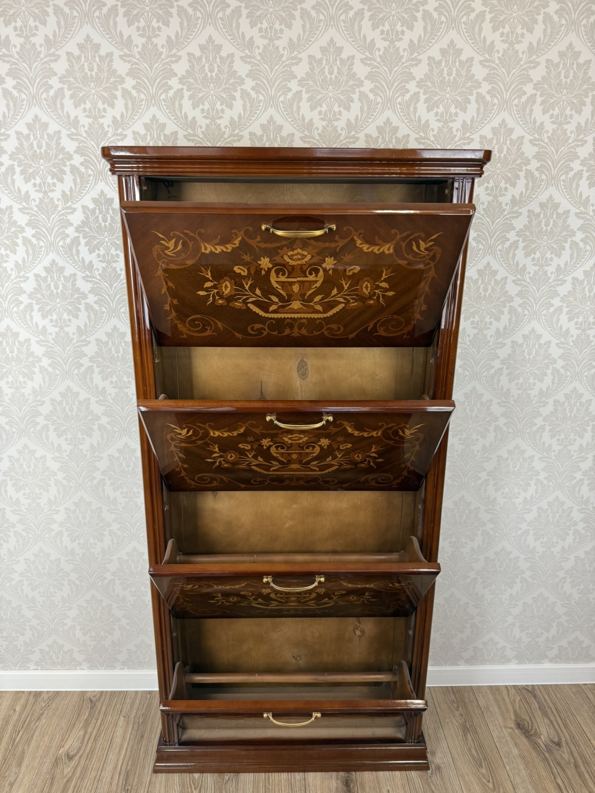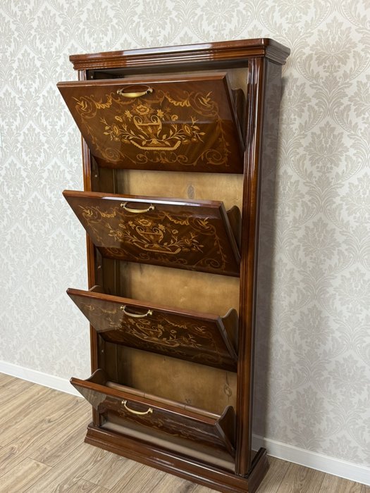 Botník s výklopnými dvířky a florální intarzií - ex153
