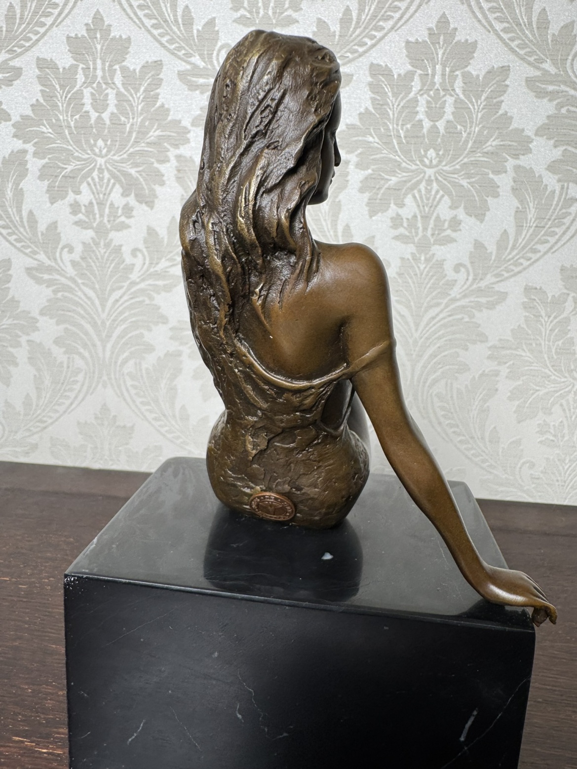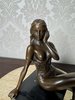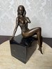 Bronzová soška sedící dívky na mramorovém podstavci - ax70