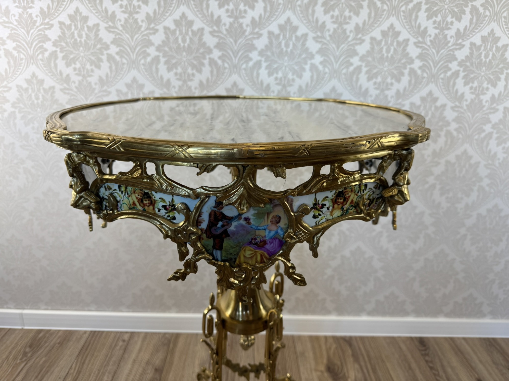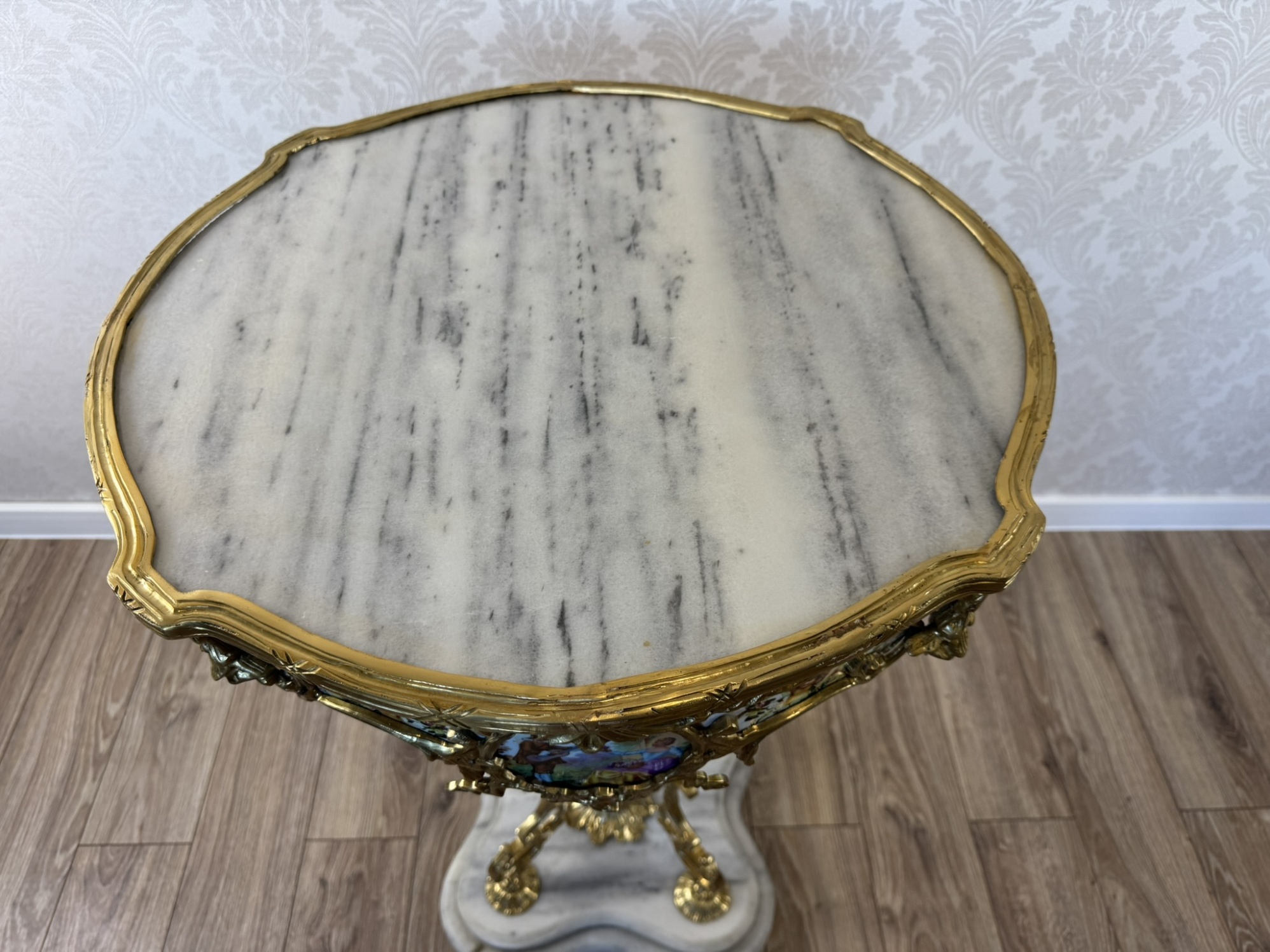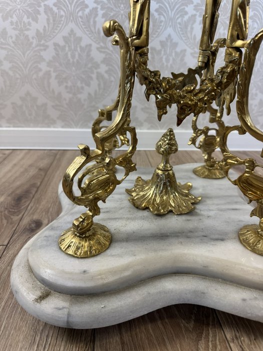 Dekorativní odkládací stolek s bronzem, miniaturami a mramorem, cena za ks - ex106
