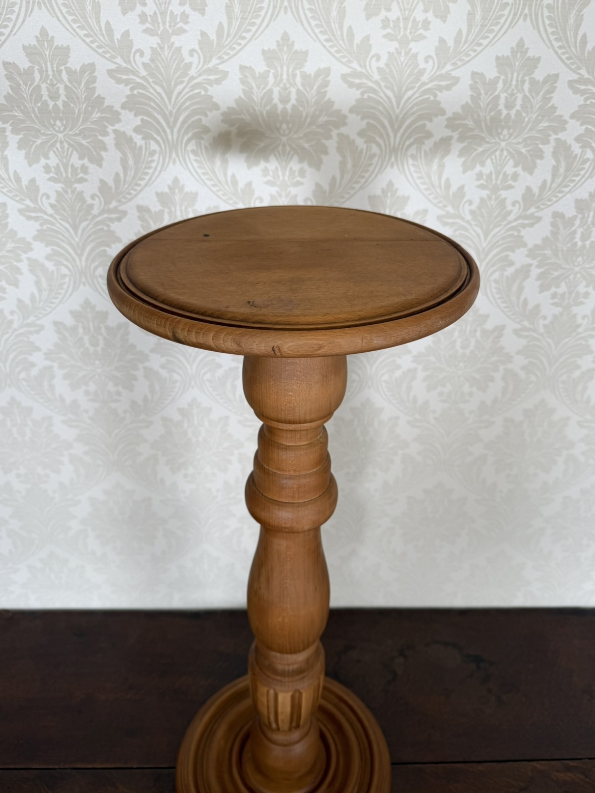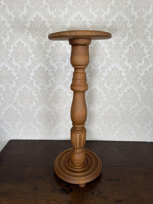 Podstavec se soustruženou středovou nohou a kruhovou základnou. Vrchní deska poskytuje stabilní plochu pro umístění květináče, sošky nebo jiné dekorace. Jemně rytý detail v dolní části dodává klasicistní výraz.2 980 Kč