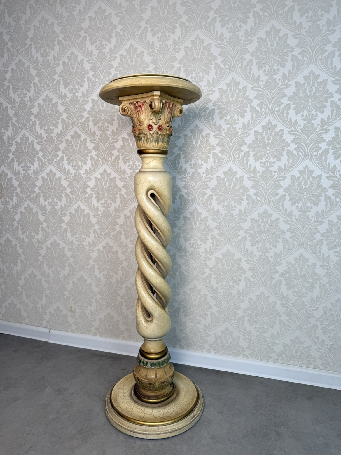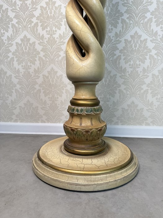 Dekorativní dřevěný sloup se spirálovitě točeným tělem, bohatě zdobenou hlavicí a rustikální patinou. Vrchní část je ideální pro vystavení sochy či vázy.7 580 Kč 6 980 Kč
