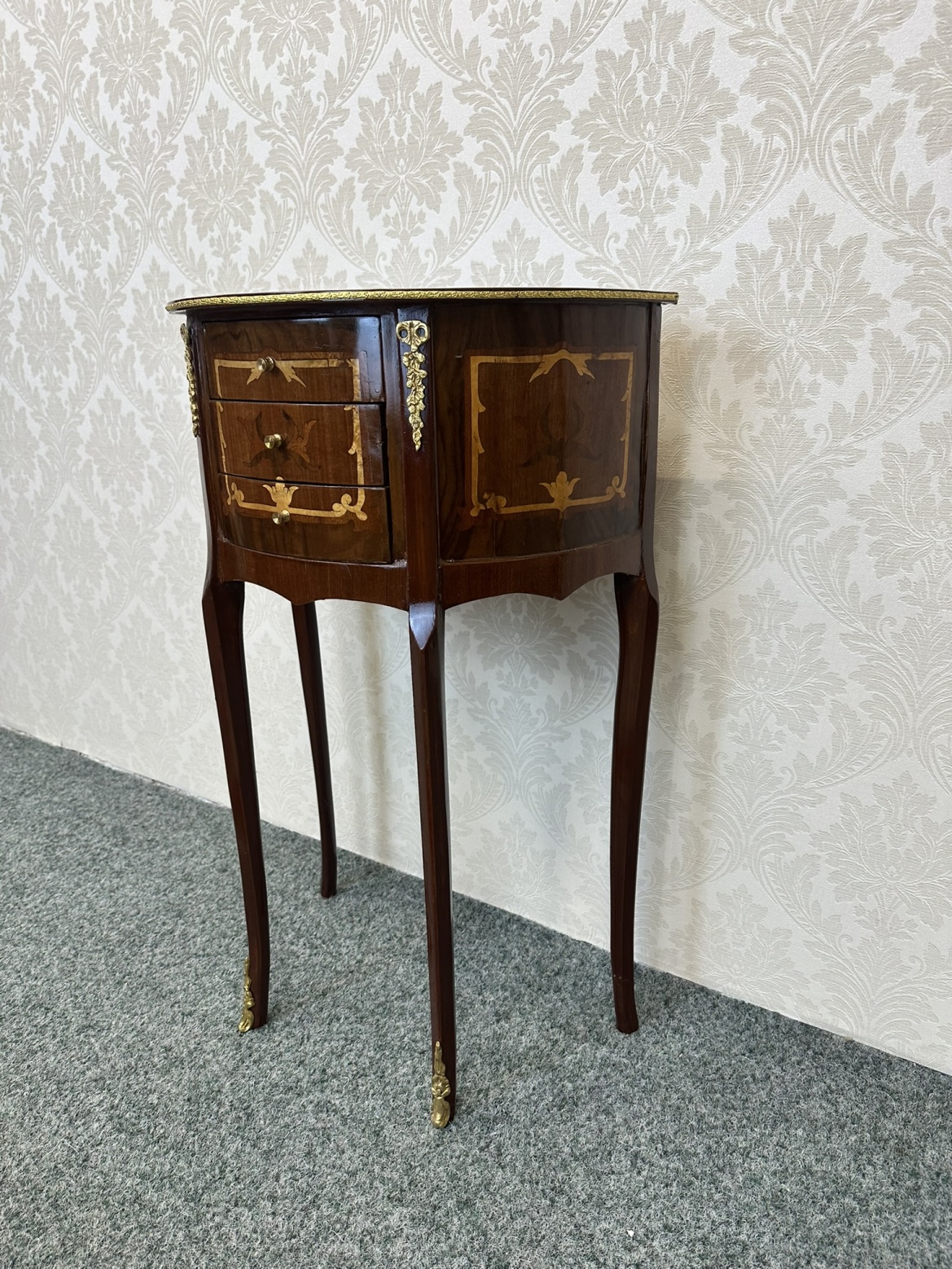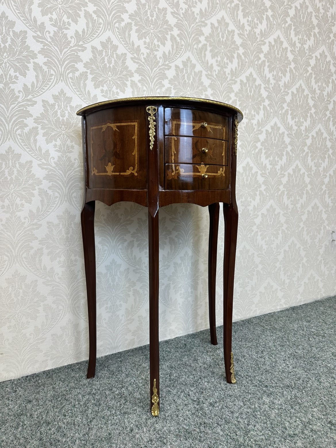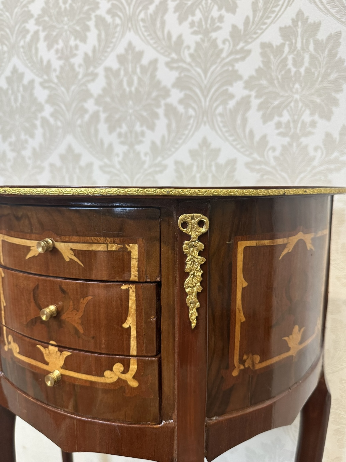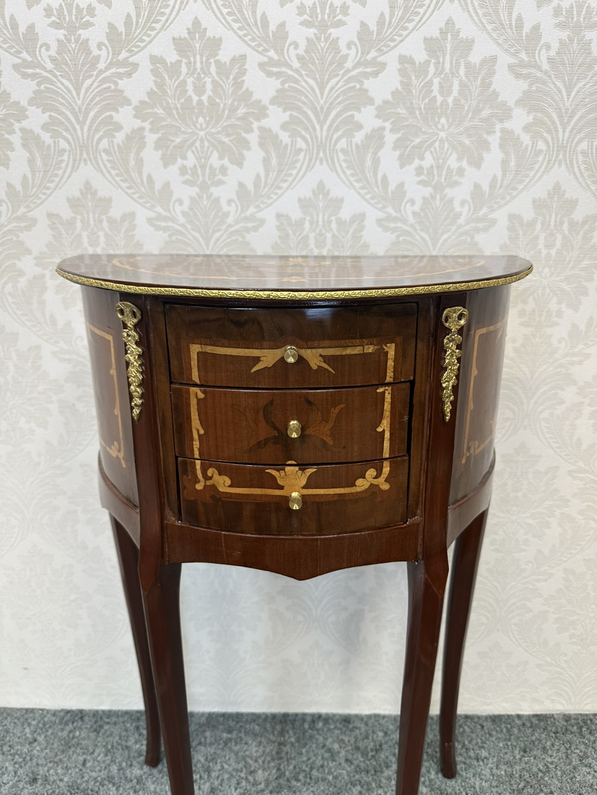 Elegantní polokruhový stolek s intarzií - ex91