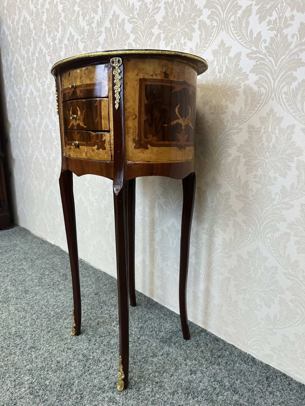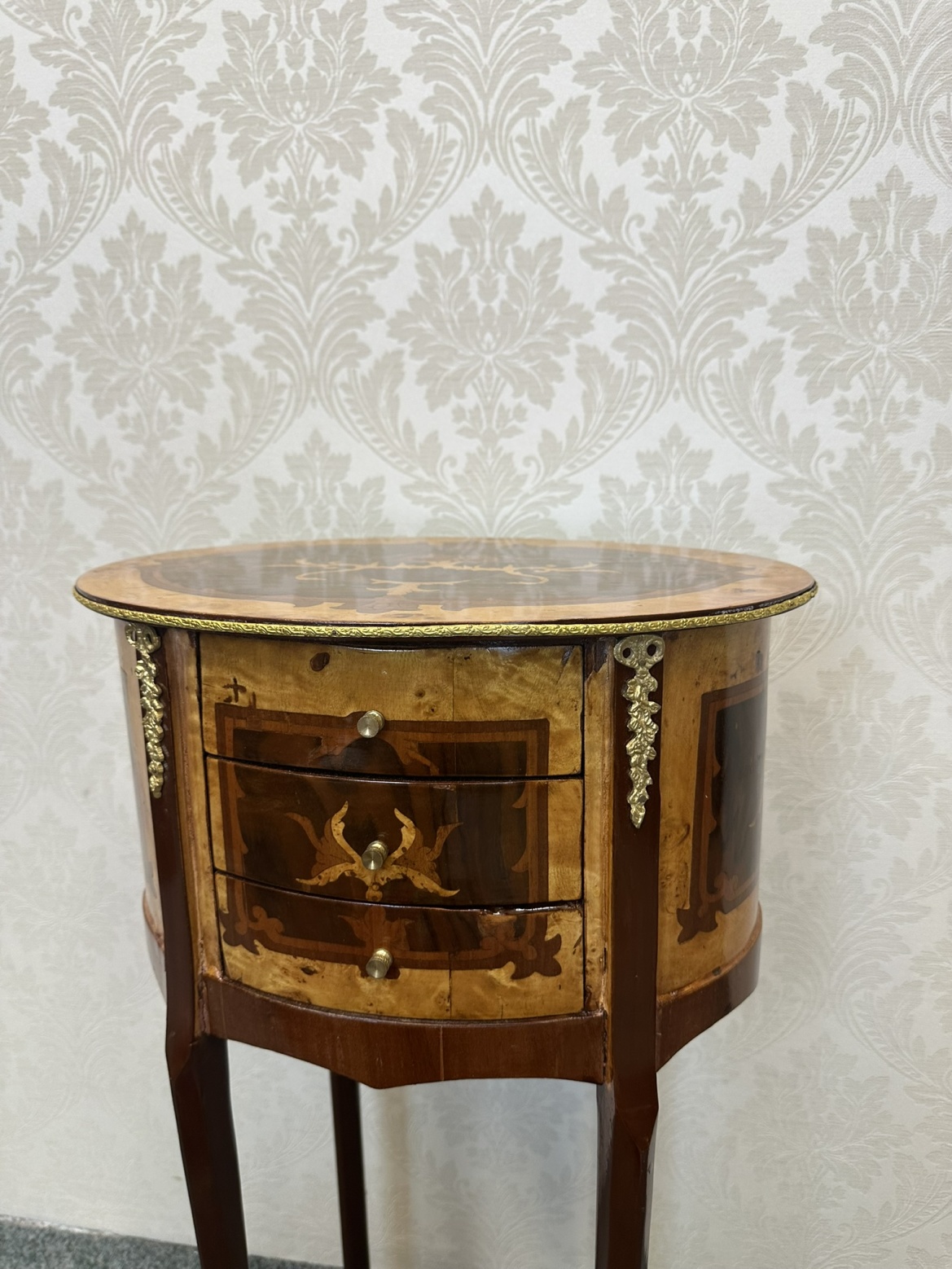 Intarzovaný oválný stolek se zásuvkami, cena za ks - ex89