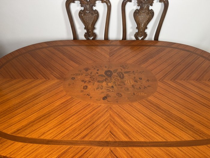 Luxusní oválný jídelní stůl se 6 židlemi, intarzie - va200