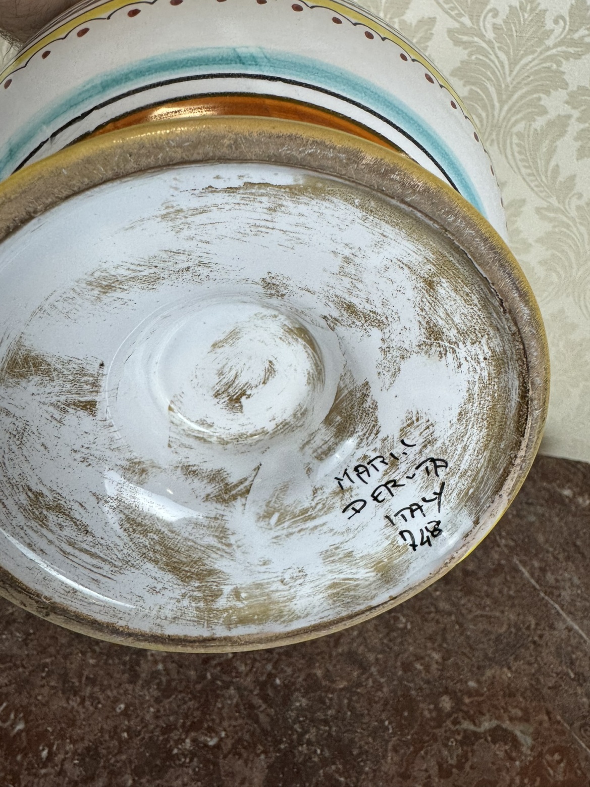 Keramická váza s výraznými uchy a barevným dekorem - f206