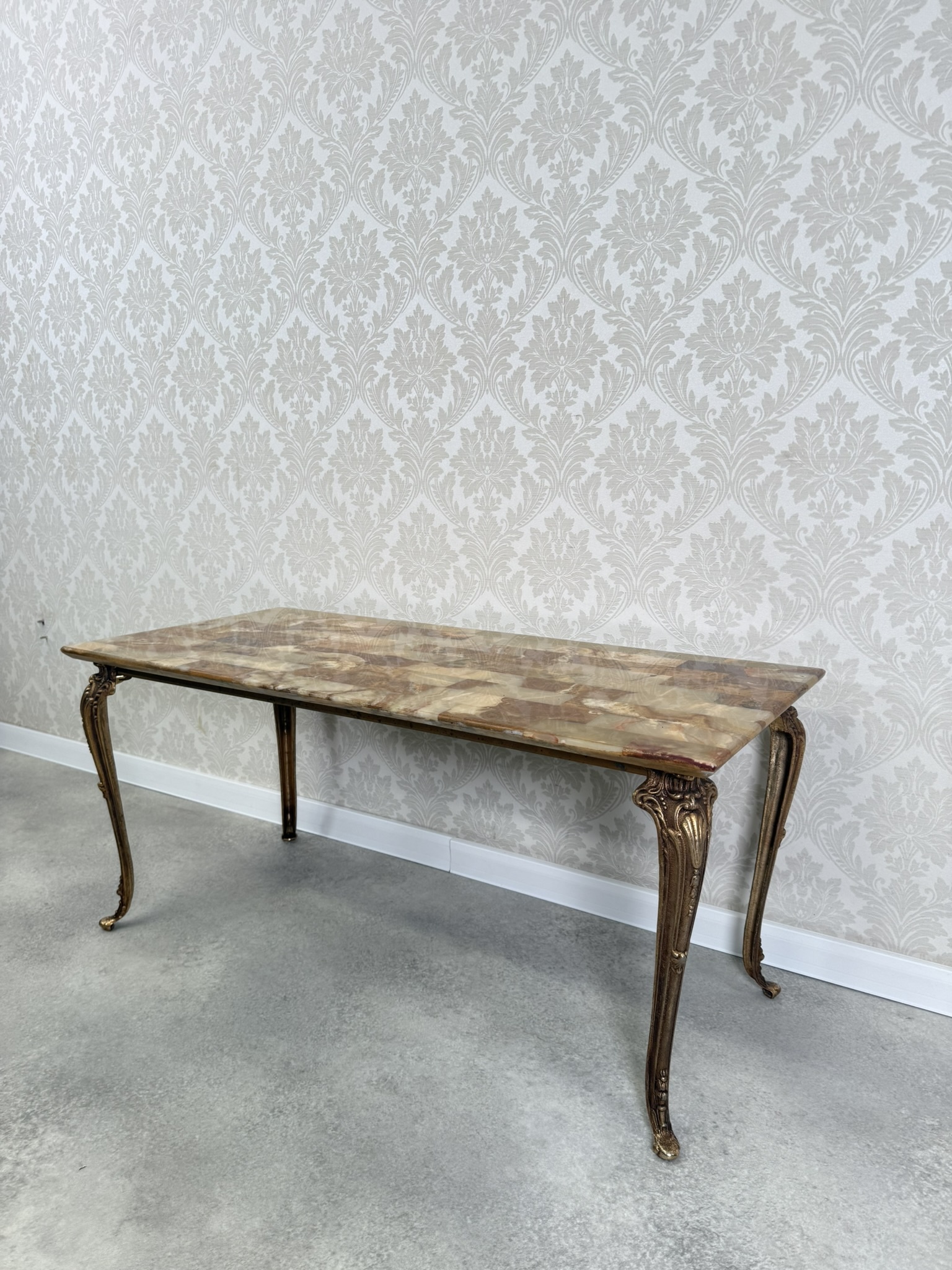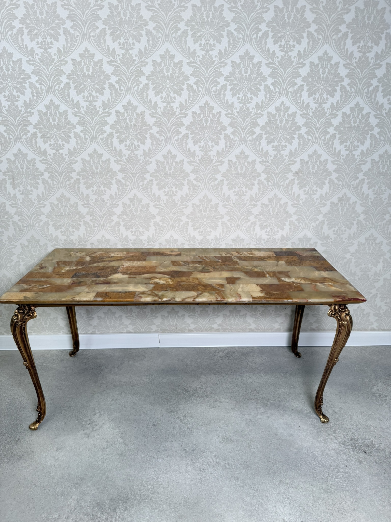 Konferenční stolek s deskou z mramoru v mozaikovém provedení. Zdobené mosazné nohy v jemně laděném stylu dodávají stolku vzdušnost a jemný historický nádech.4 570 Kč