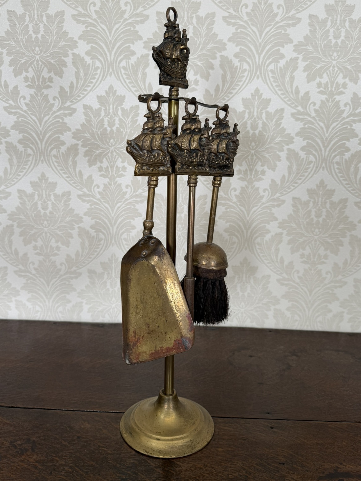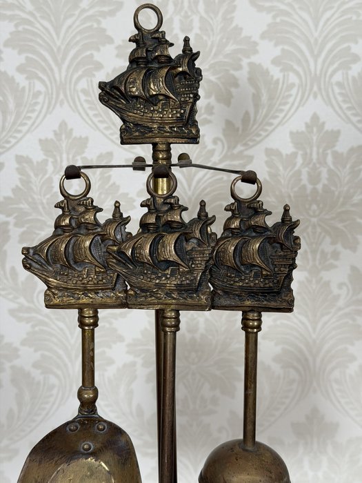 Dekorativní krbová sada, sestávající z lopatky a smetáčku, zavěšených na stojanu s reliéfem historických plachetnic. Námořní motivy v horní části podtrhují charakter objektu.1 250 Kč