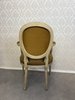 Konstrukce je opatřena světlou patinovanou povrchovou úpravou. Oválné opěradlo, opěrky i sedák jsou čalouněny bohatě zdobenou látkou s florálním motivem.5 150 Kč