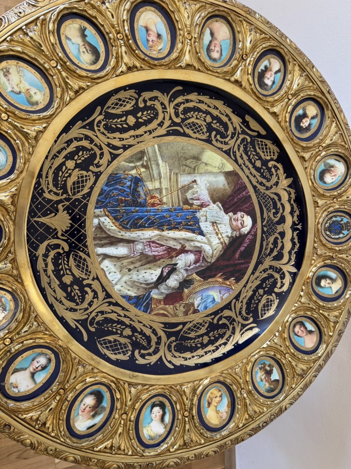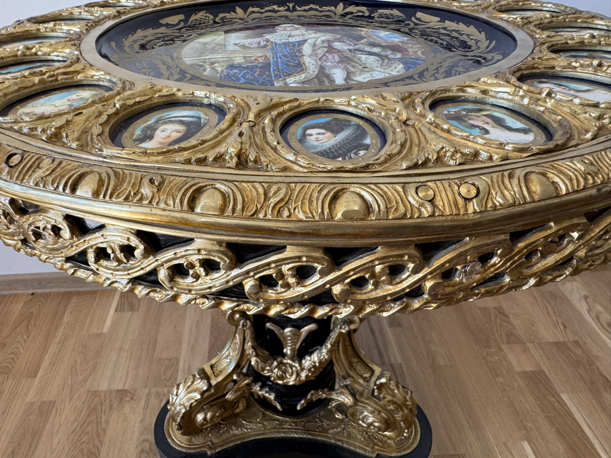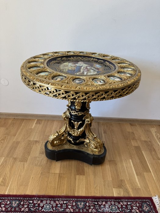 Luxusní barokní stůl s malovanou deskou a bronzovými detaily - ex141