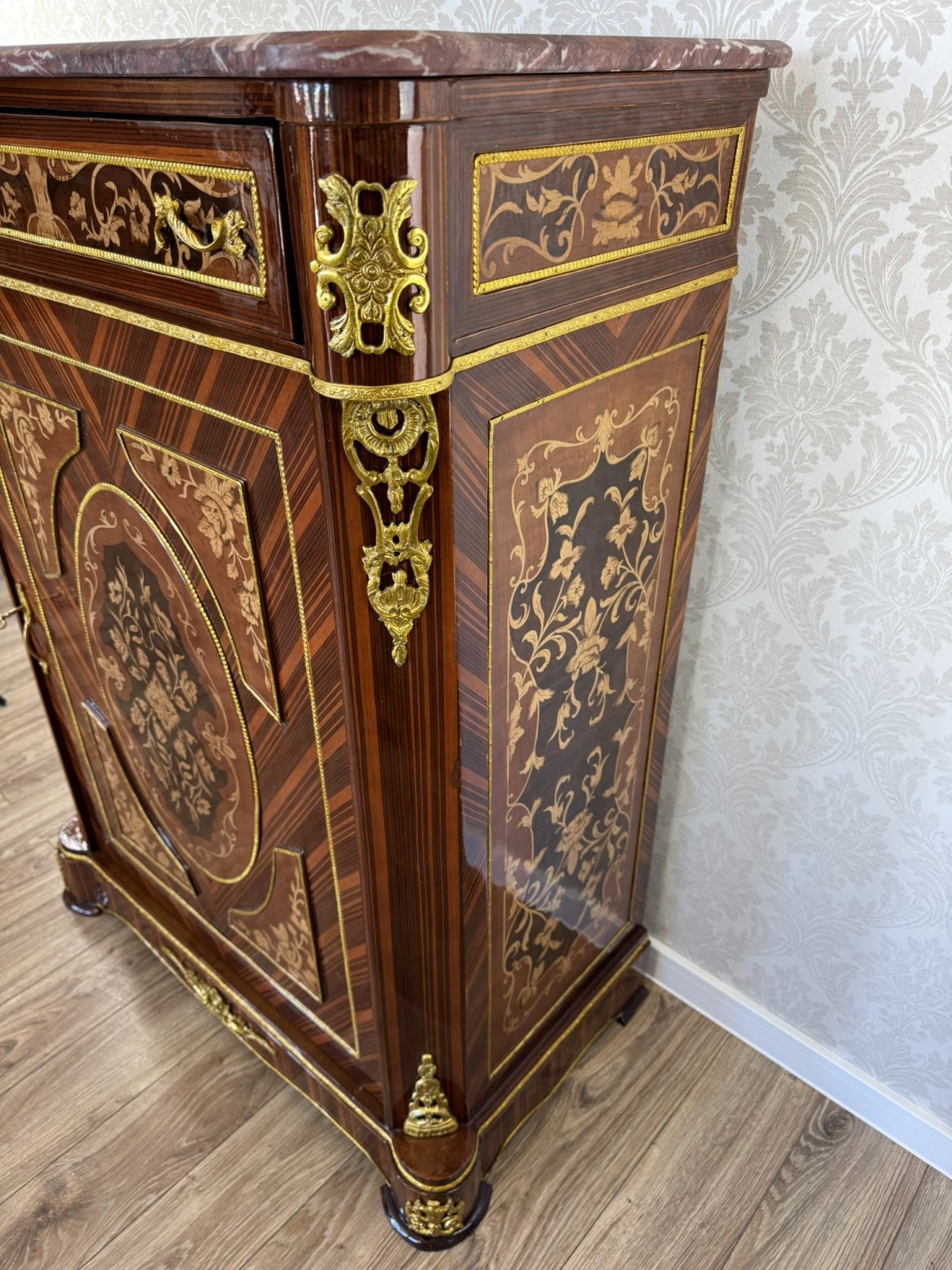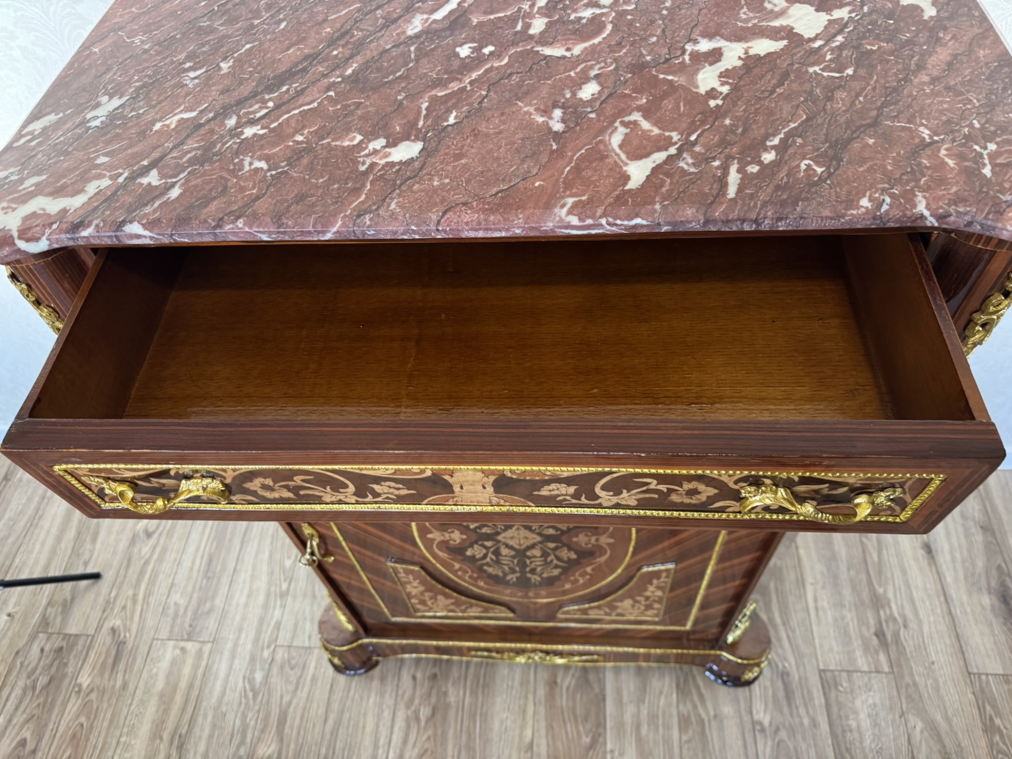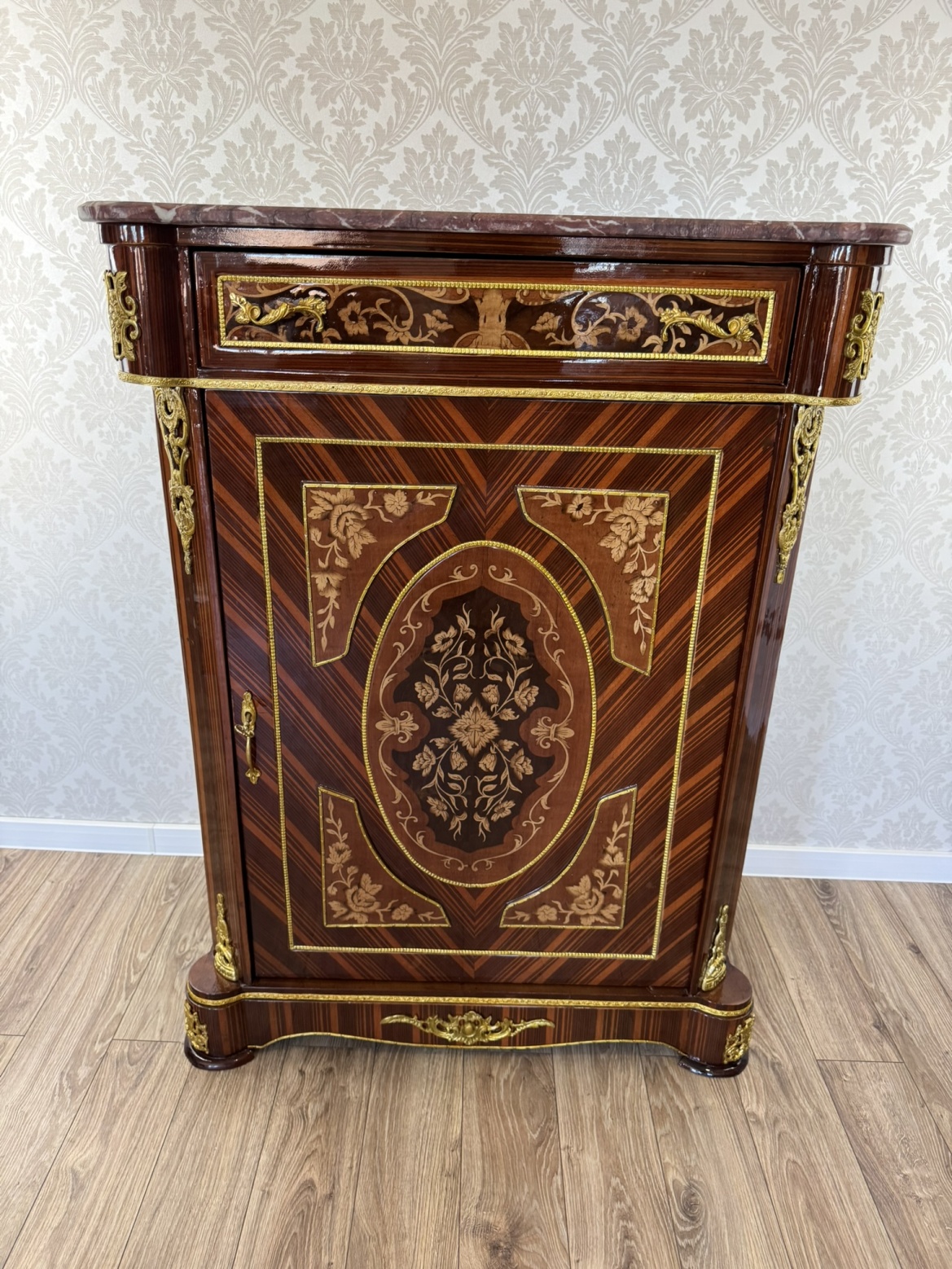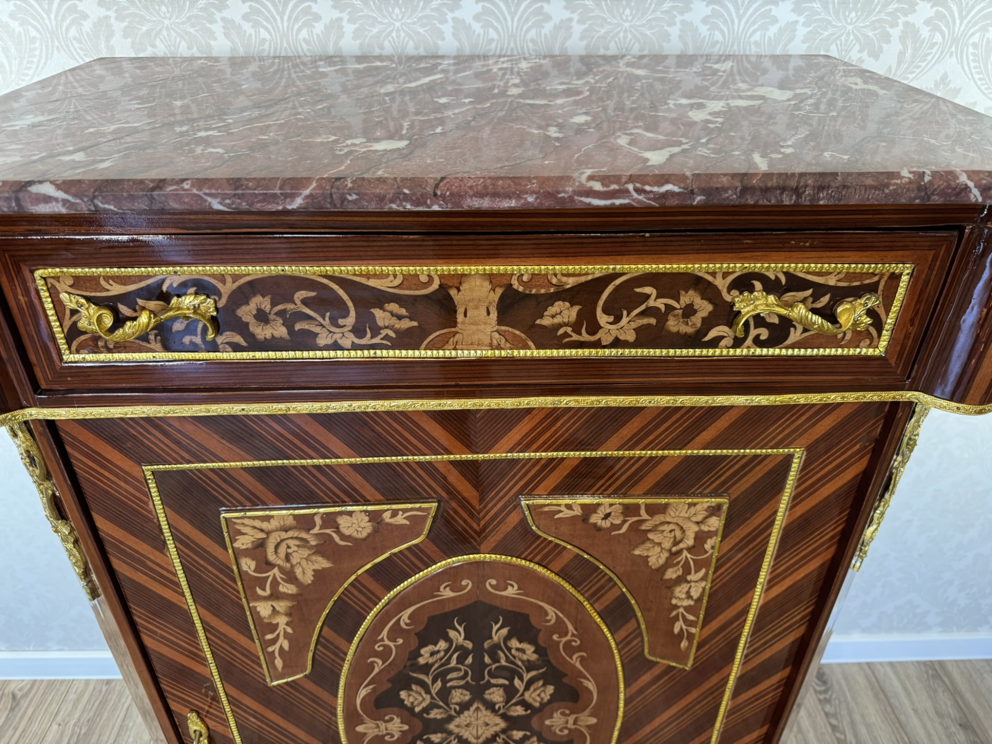 Luxusní komoda s oválnou intarzií a mramorovou deskou, cena za ks - ex105