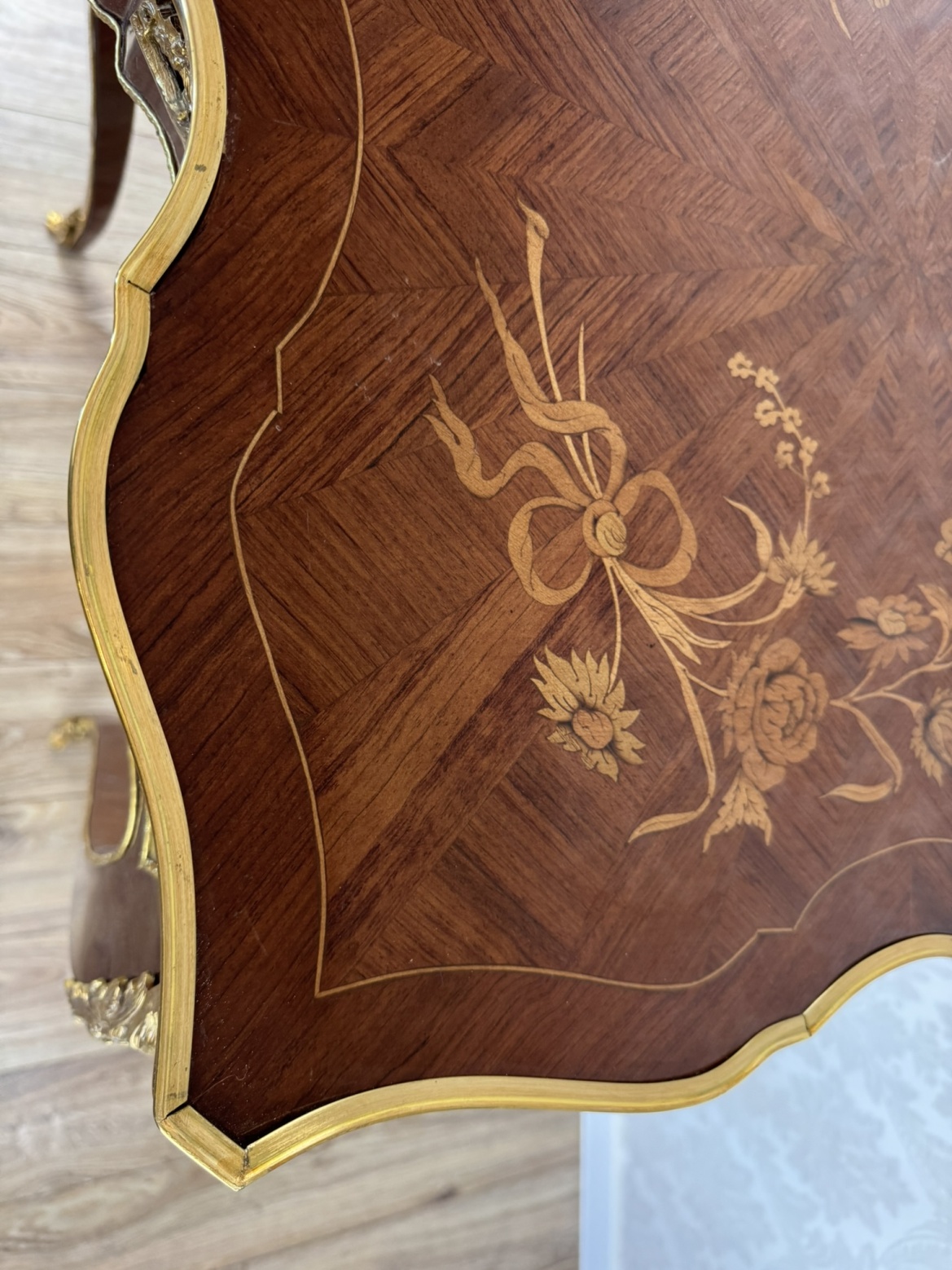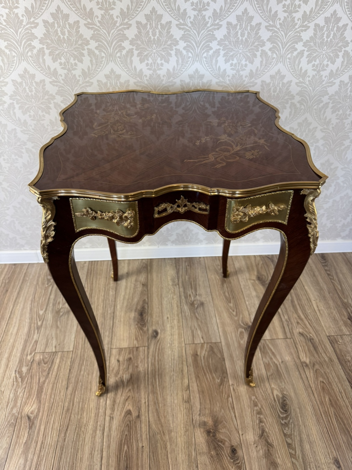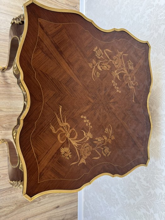 Luxusní stolek s florální intarzií a bronzovými ozdobami, cena za ks - ex124