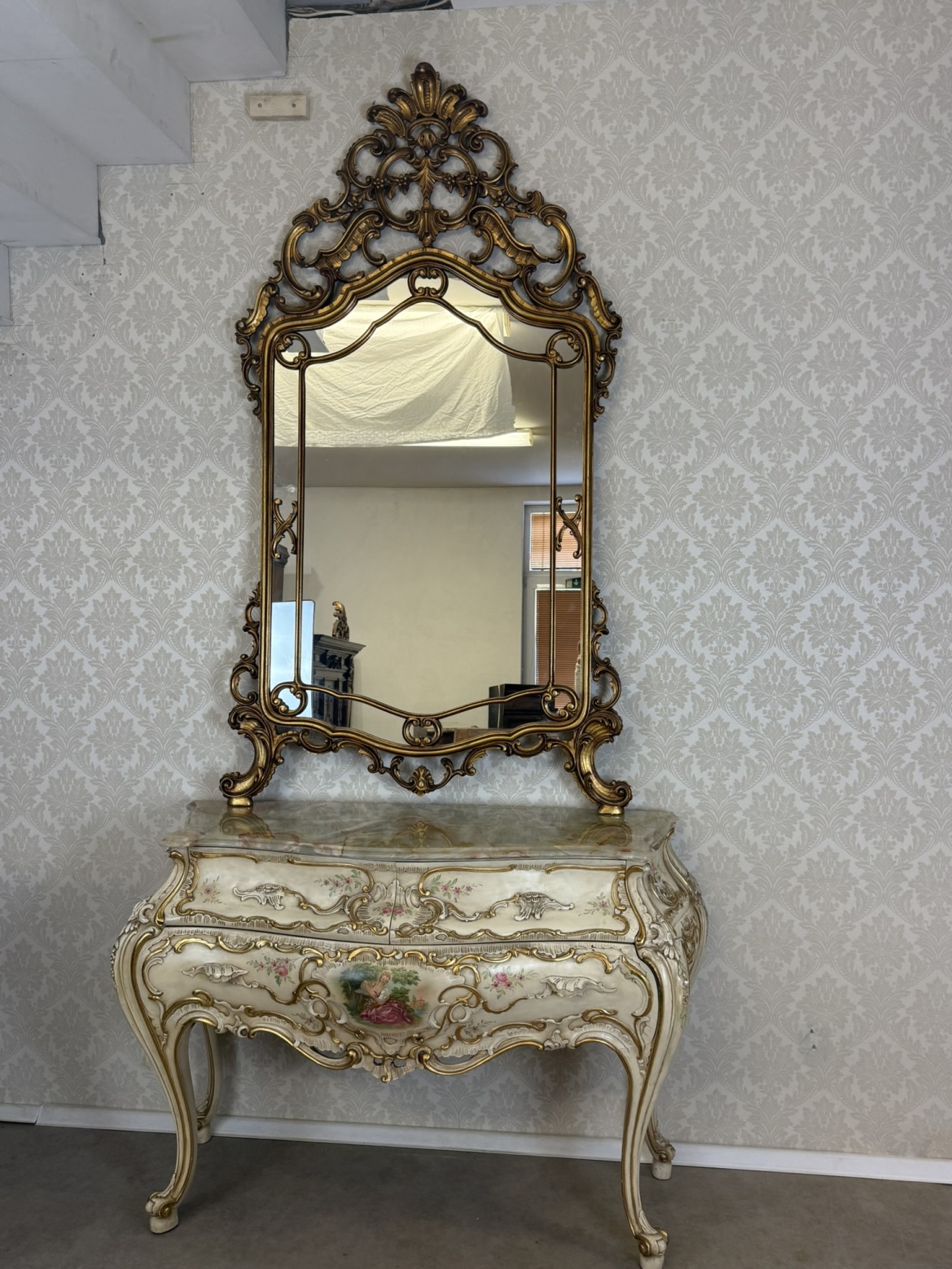 Toaletka s mramorovou deskou a vyřezávaným zrcadlem - s44