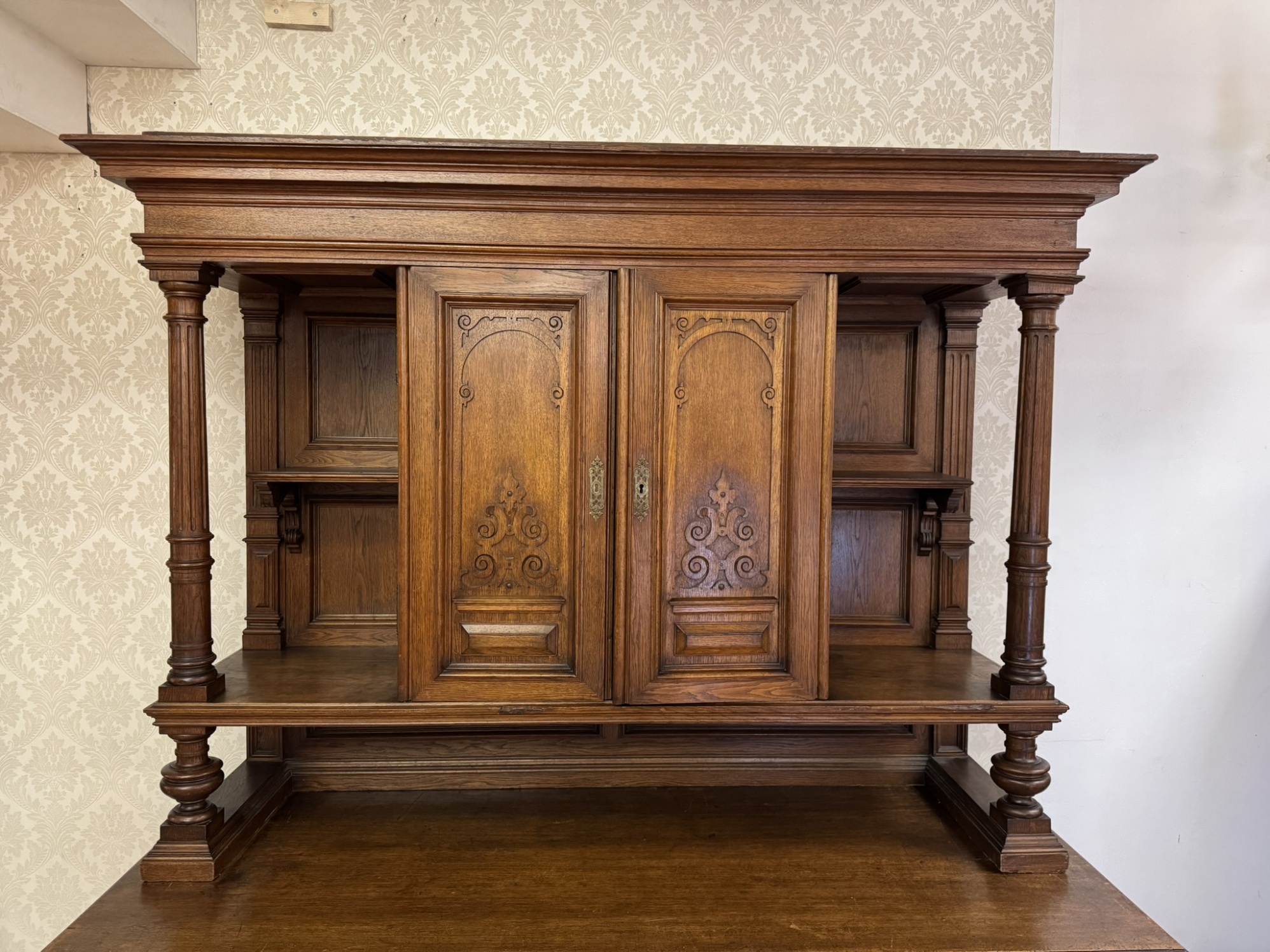 Dvoudílný příborník s vyřezávanými detaily - f34