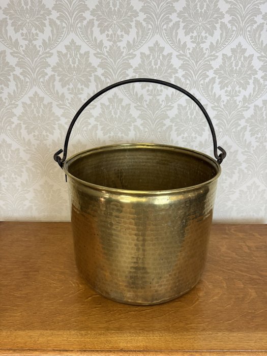 Mosazné vědro s tepaným povrchem a kovovým uchem - k76