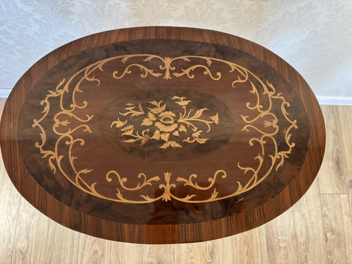 Oválný intarzovaný stolek s prohnutými nohami, cena za ks - ex108