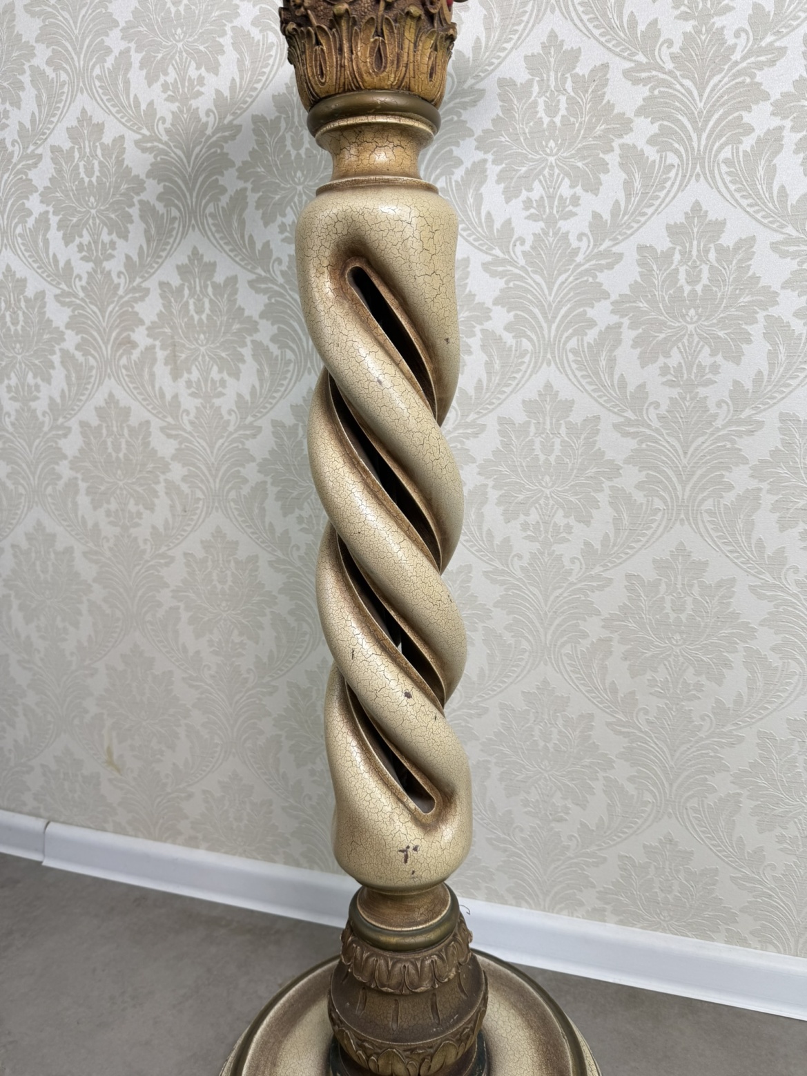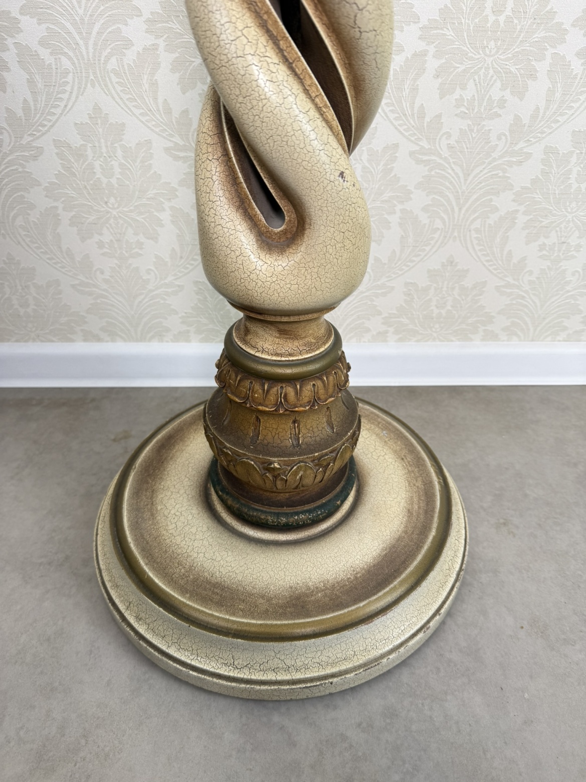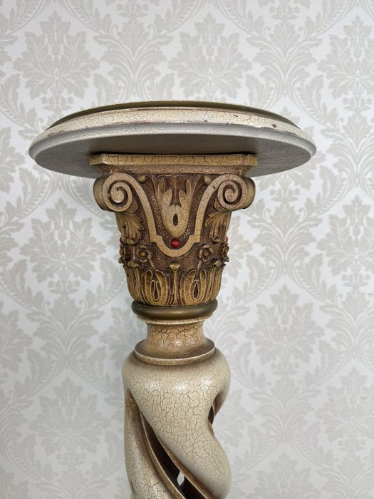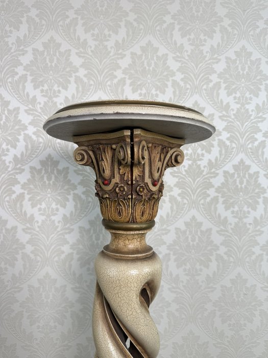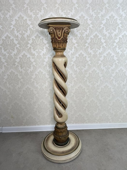 Výrazný podstavec s hlavicí ve stylu korintského řádu, výrazným spirálovitým tělem a patinovaným povrchem ve vzhledu starého kamene. Horní část sloupu je prasklá – viz foto. Vhodný jako stojan pro sochu, květináč nebo lampu, doplní historizující interiér.7 150 Kč 6 690 Kč