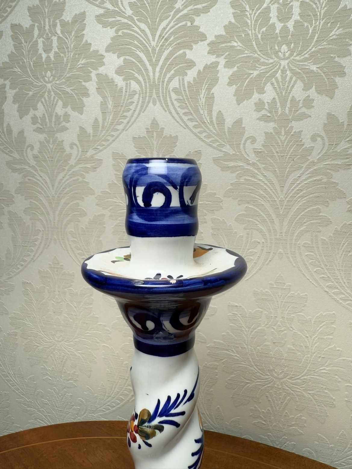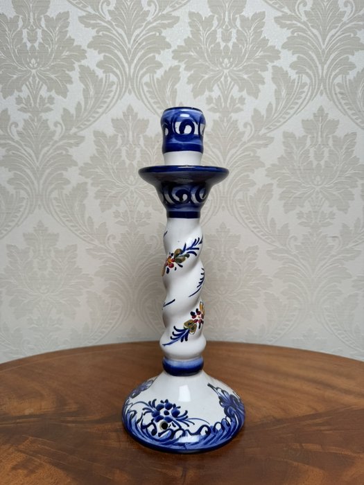 Svícen z portugalské dílny Fai Real Alcobaça. Bílo-modrý dekor s květinovými motivy a jemnými akcenty v červené a zlaté barvě. Tělo svícnu je spirálovitě tvarované, což dodává celku elegantní pohyb.1 280 Kč