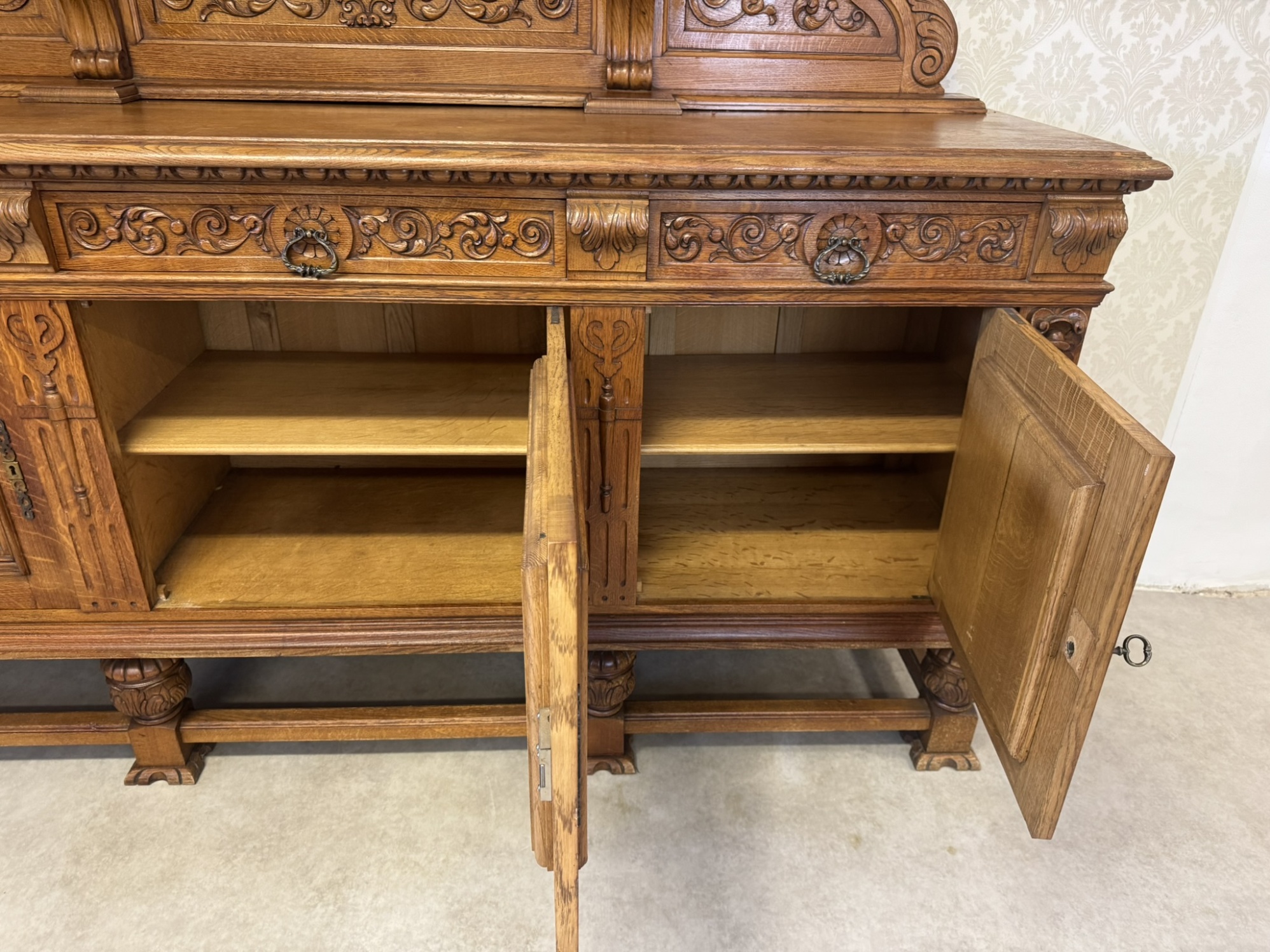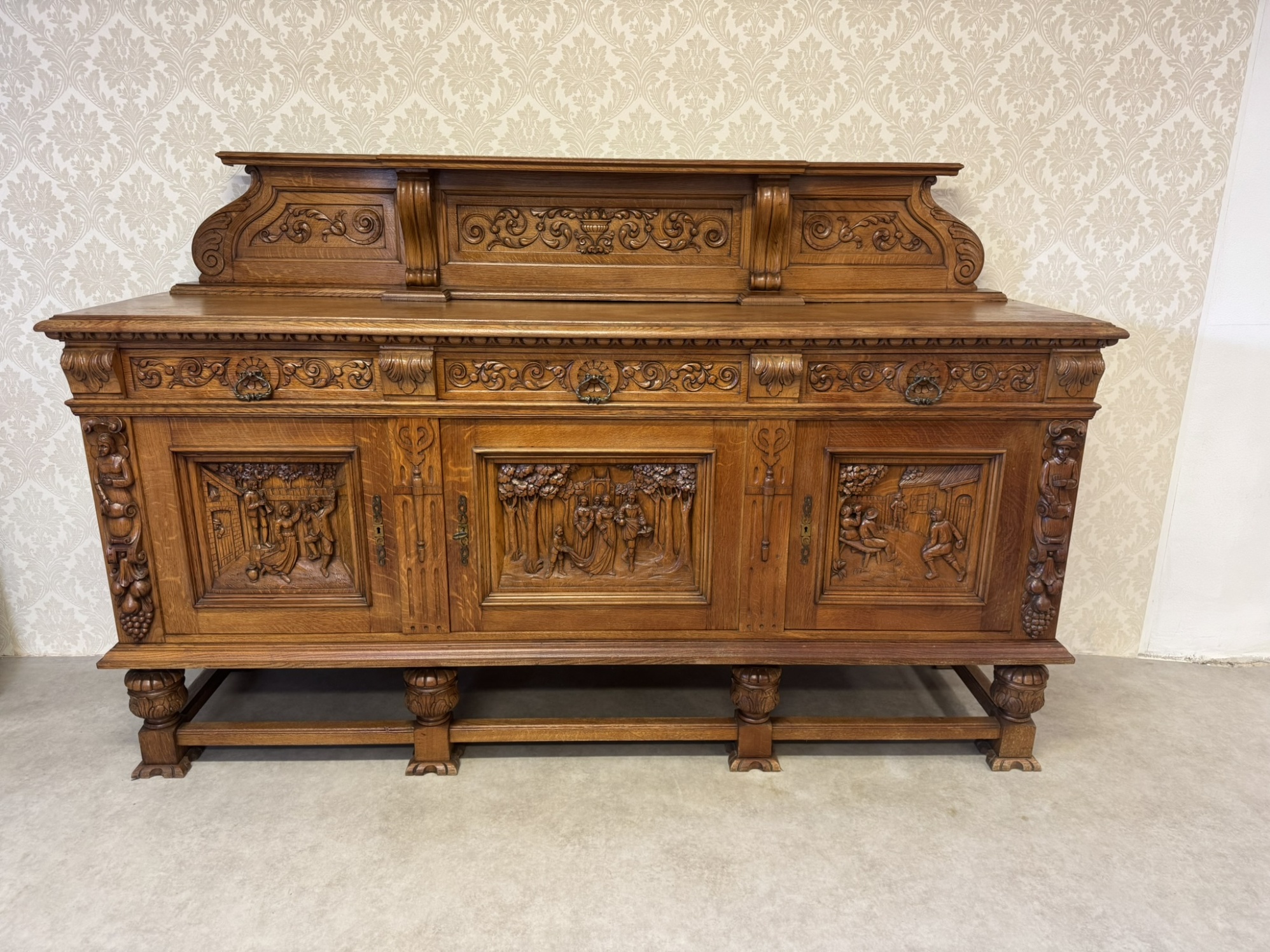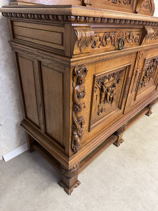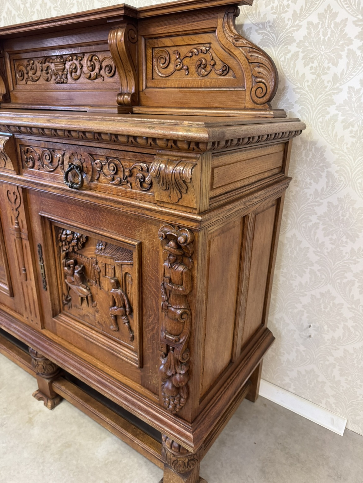 Příborník s vyřezávanými výjevy a reliéfními sloupky - k43