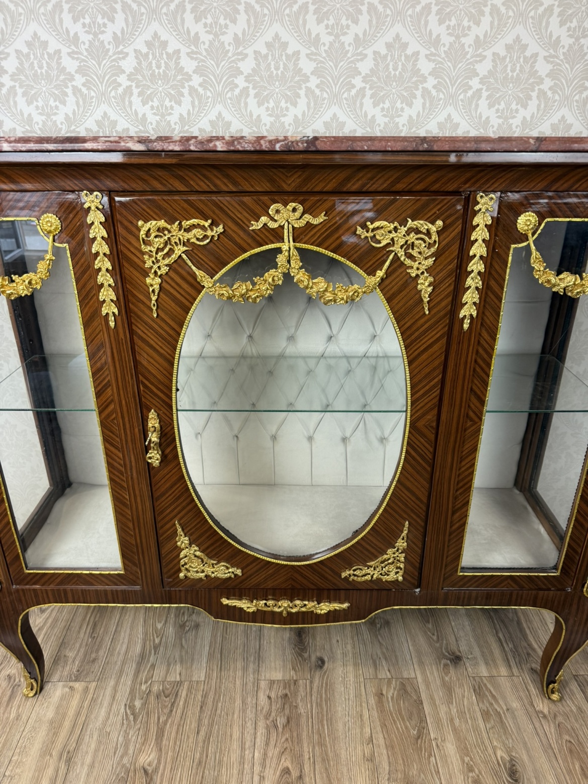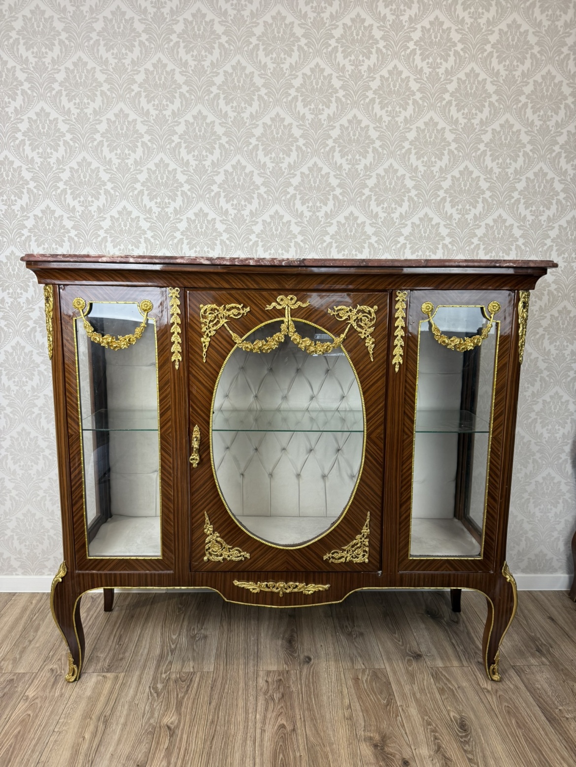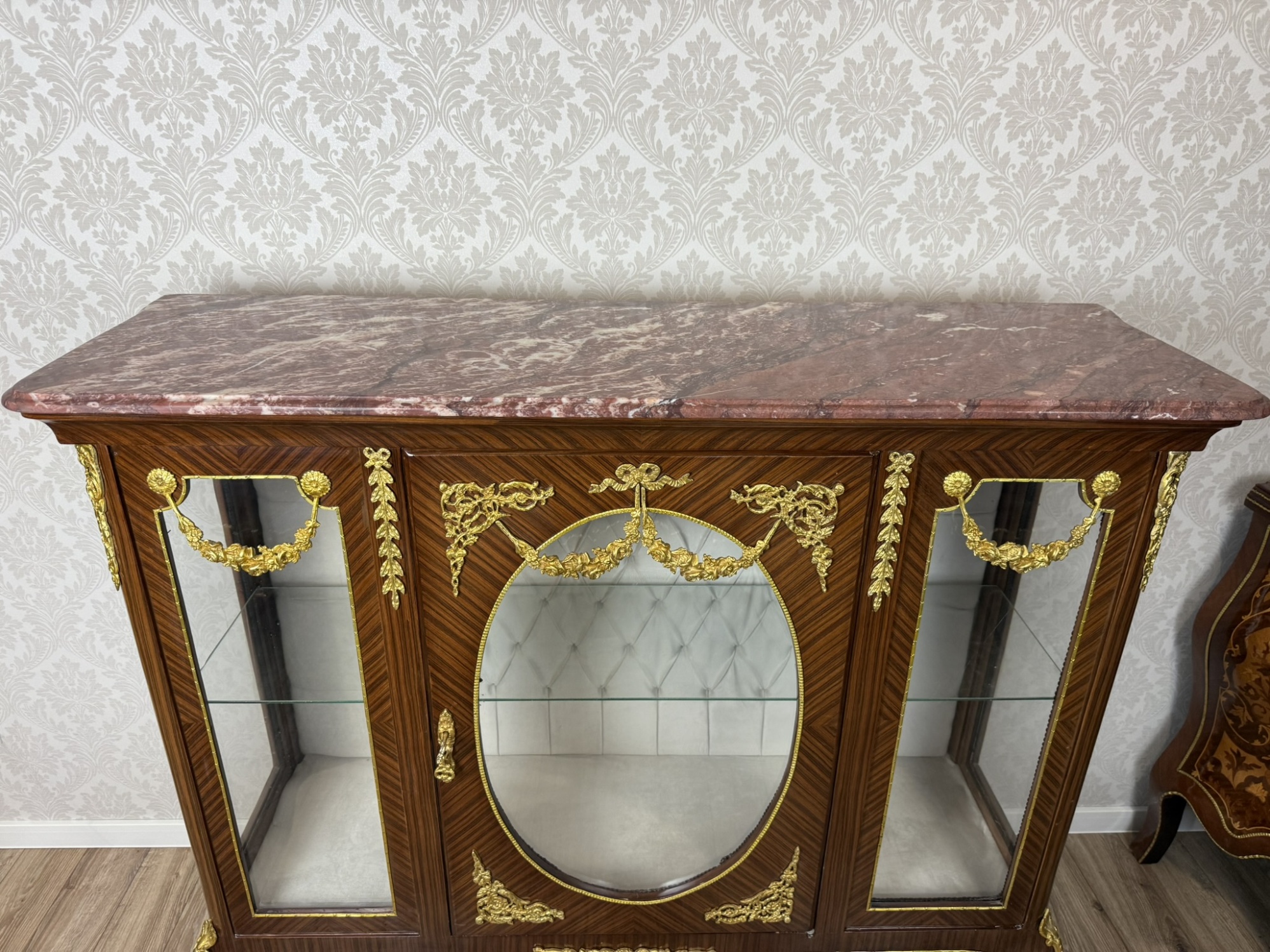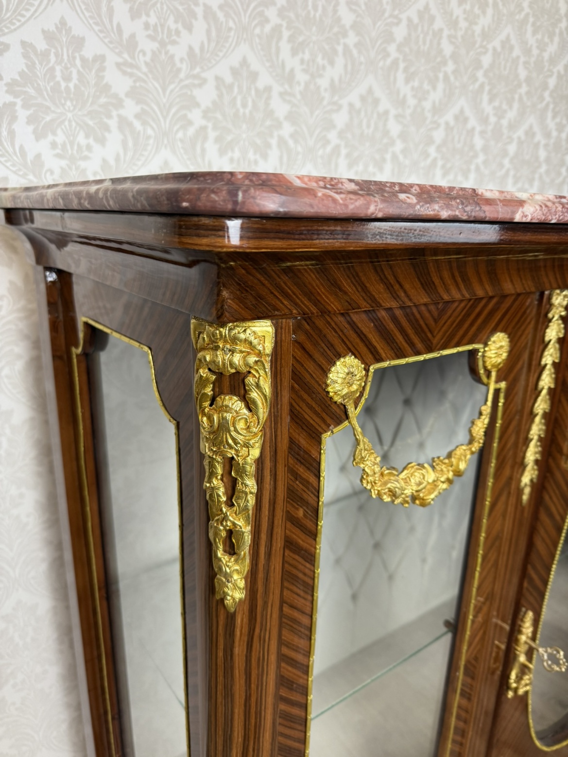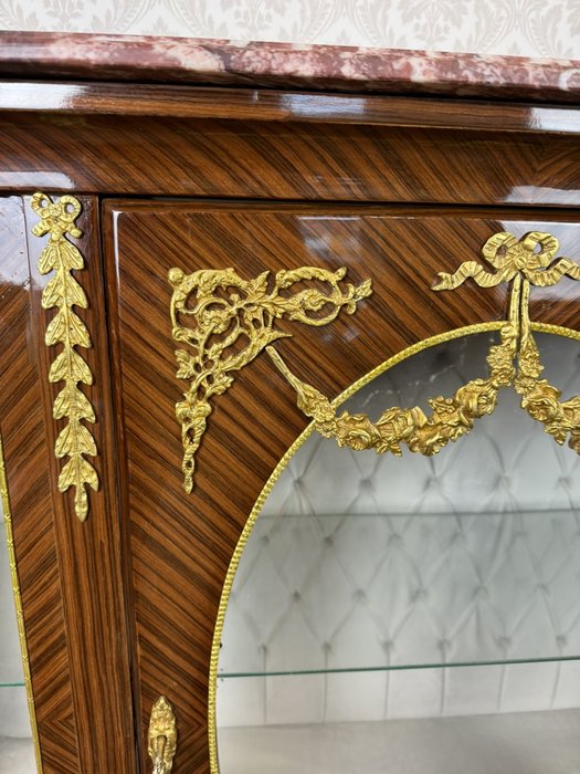 Prosklená vitrína s mramorovou deskou a bronzovými aplikacemi - ex156
