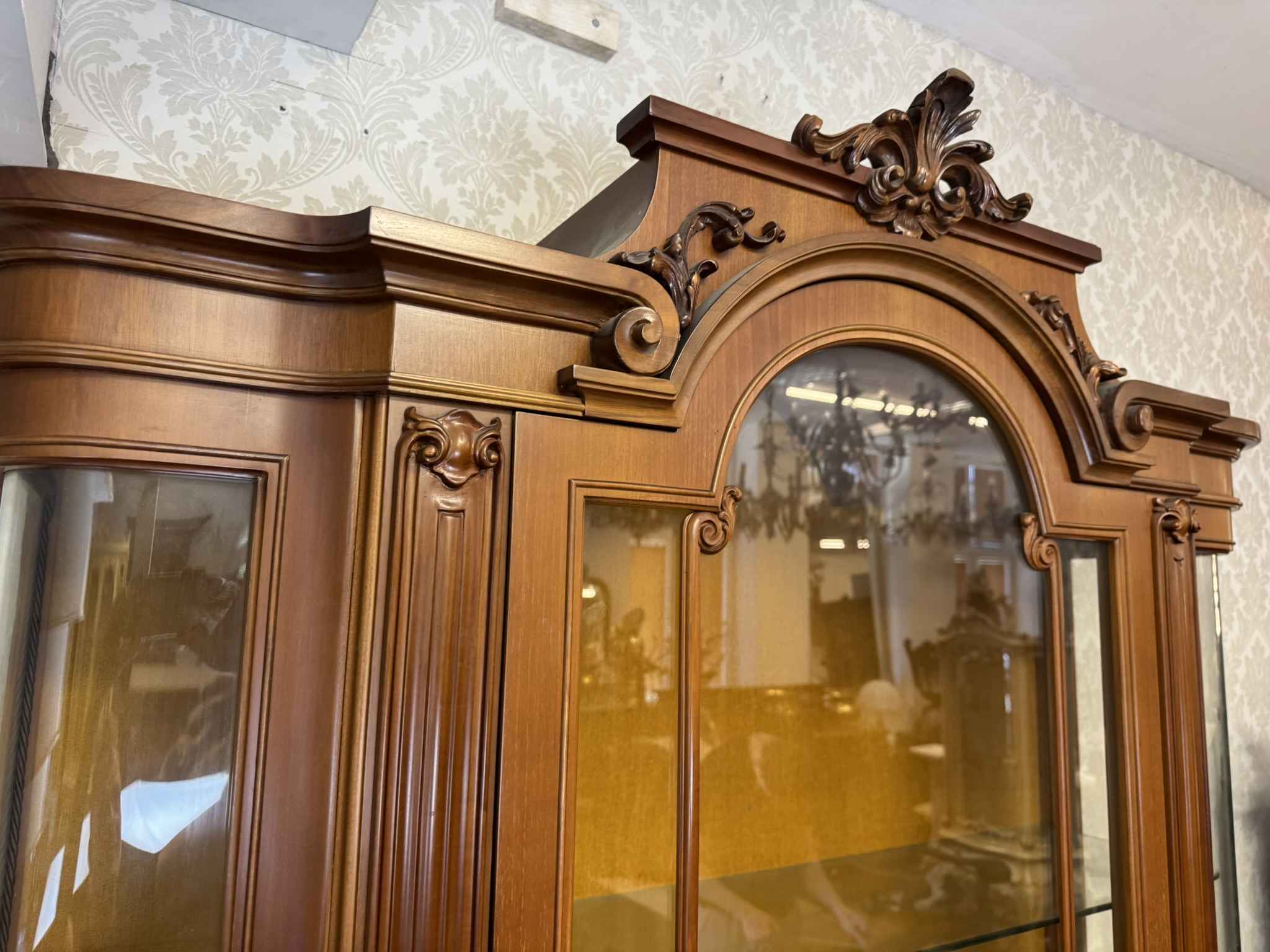 Prosklená vitrína s vyřezávanými detaily - k122