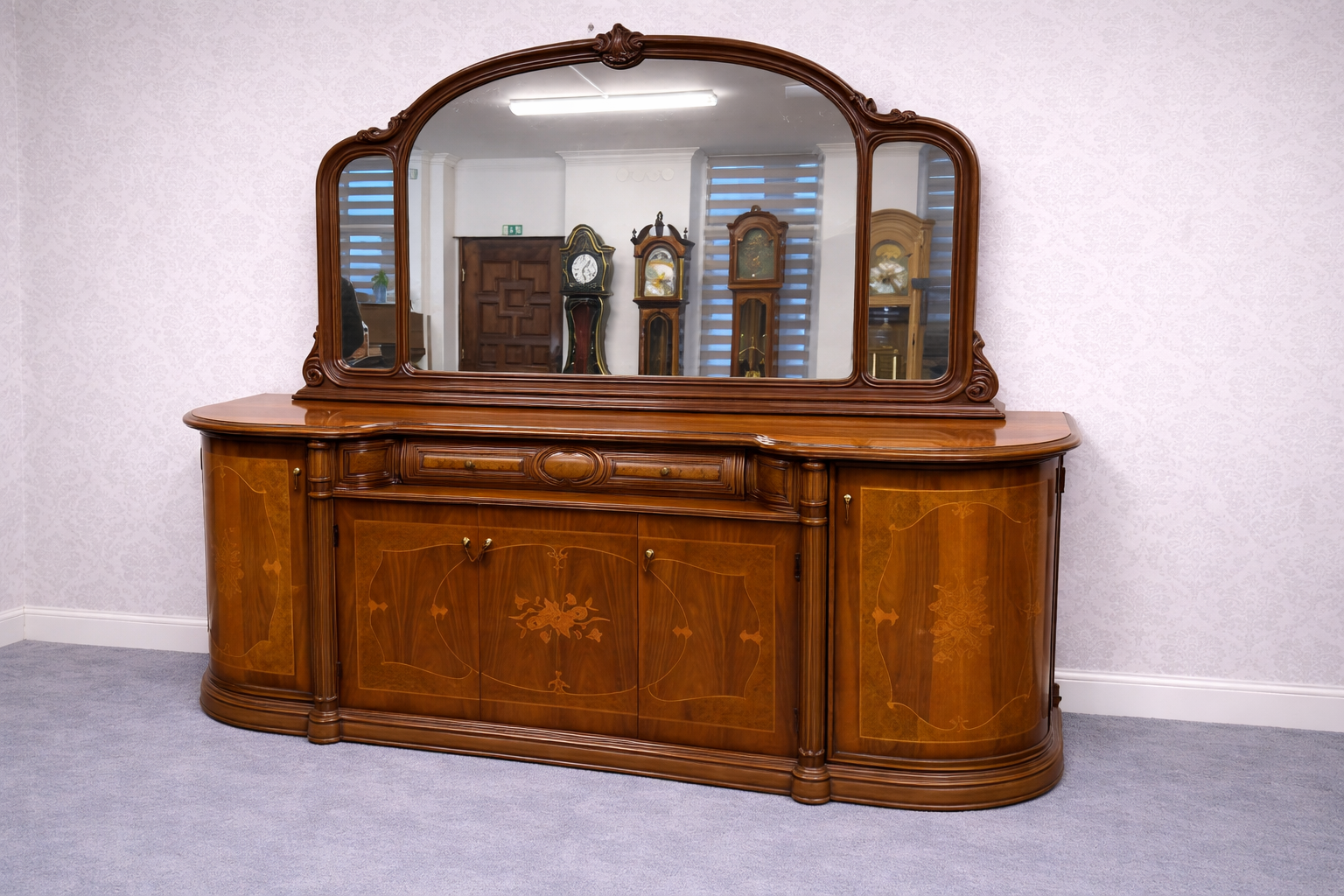 Reprezentativní intarzovaný příborník s velkým zrcadlem