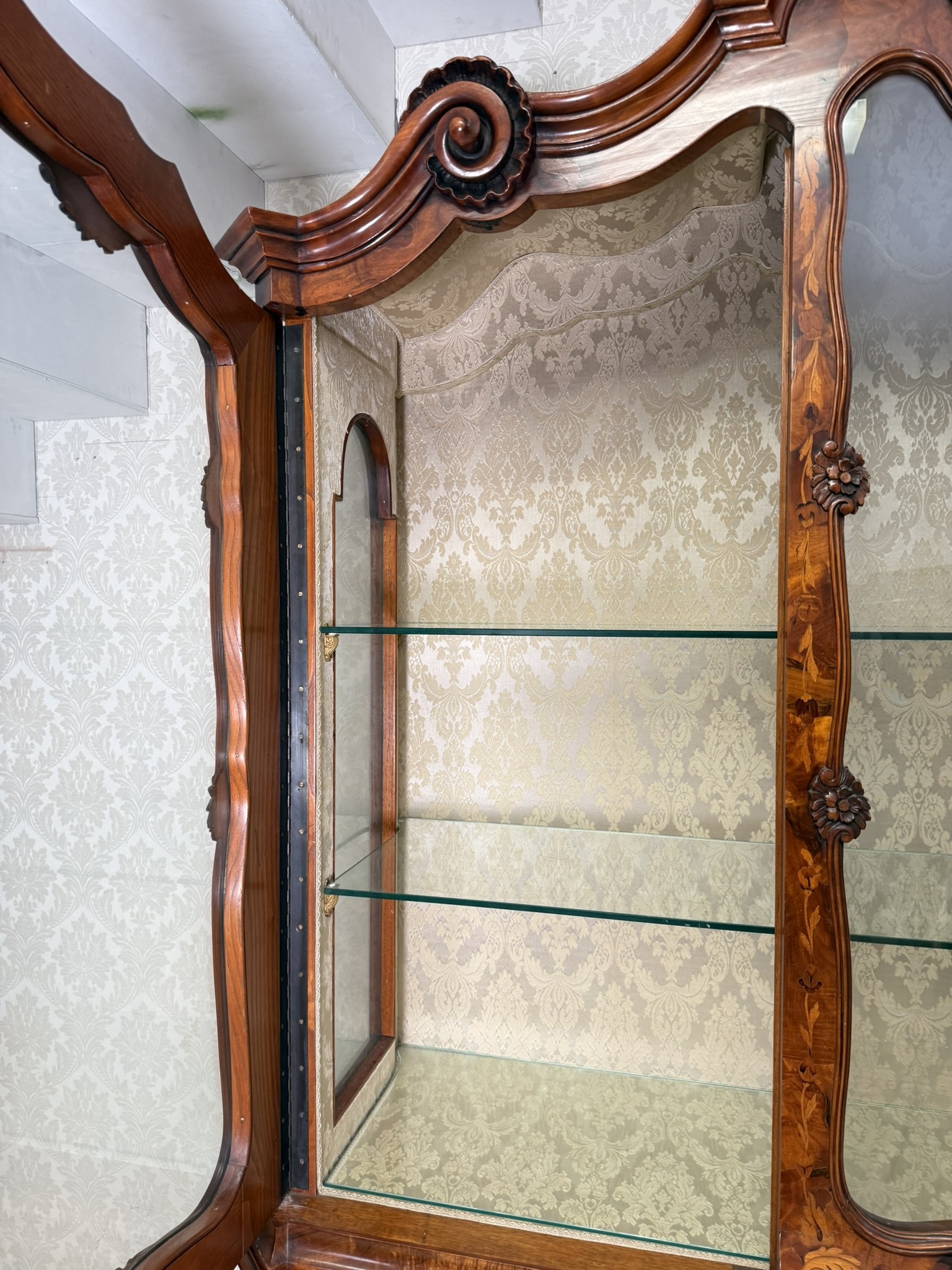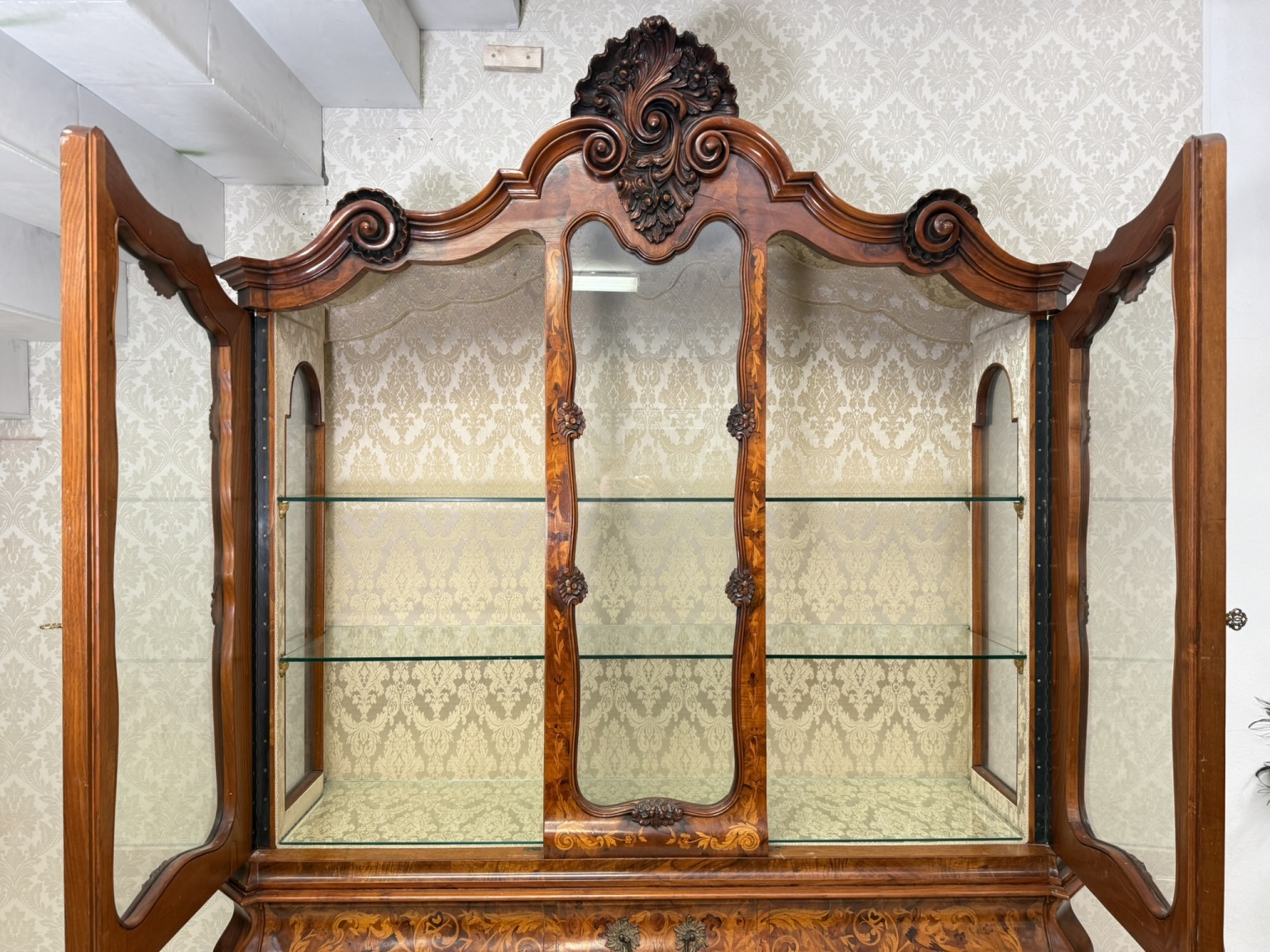 Reprezentativní vitrina s intarzií a řezbou - va124
