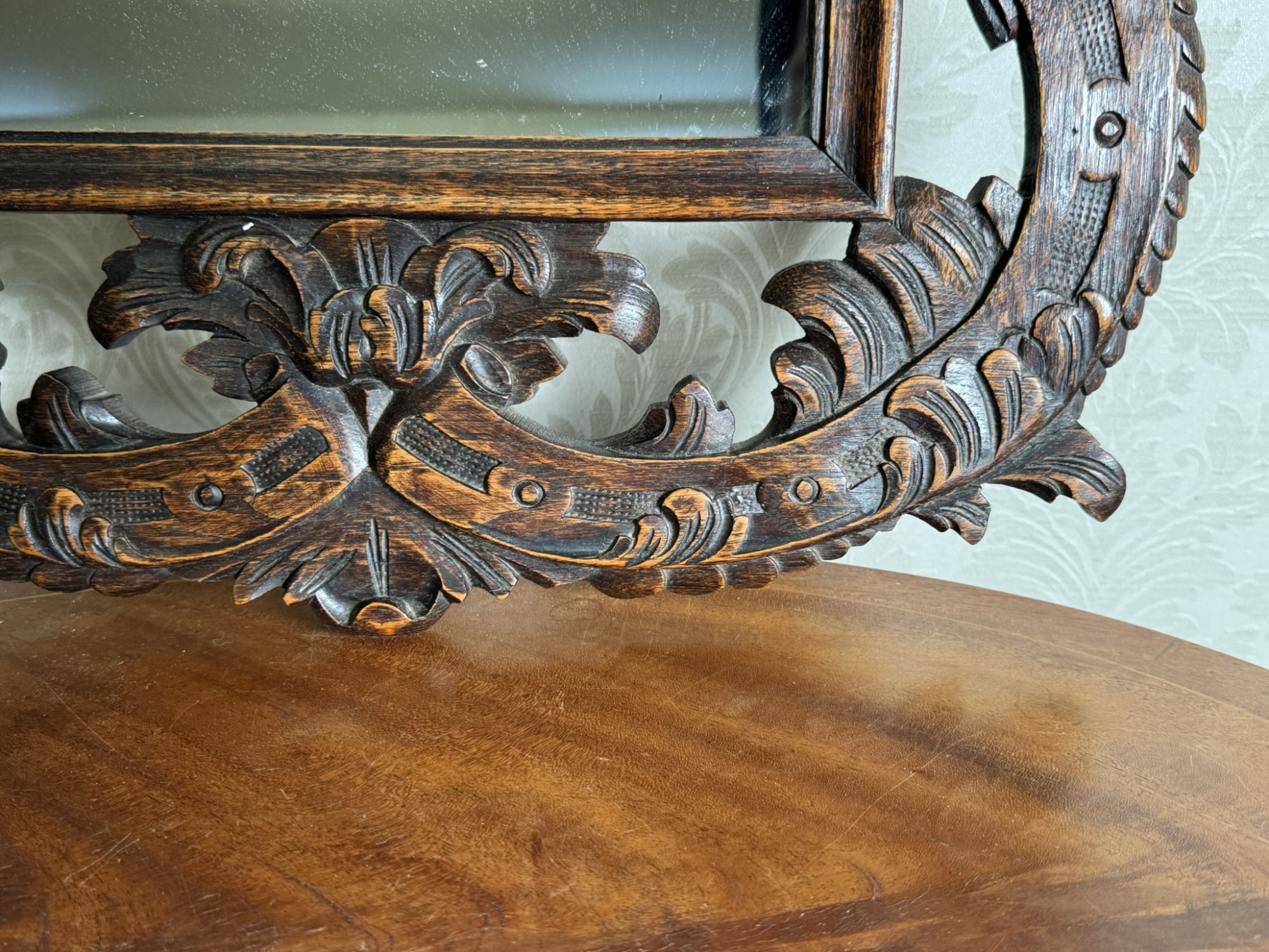 Řezbované nástěnné zrcadlo, dřevěný rám - s174