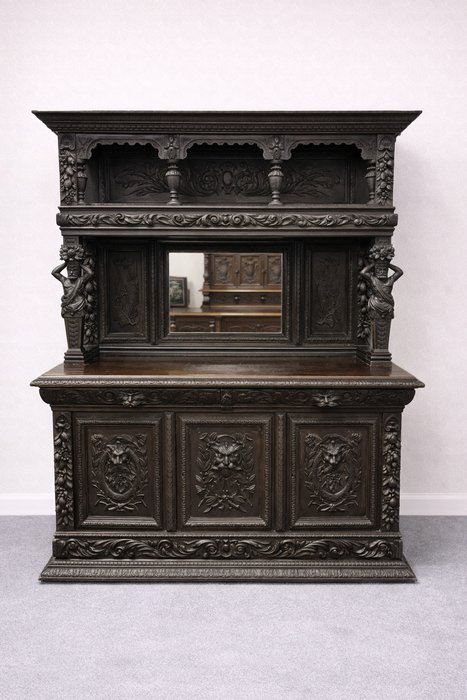 Ručně řezaný dvoudílný příborník s atlasovými postavami - f63