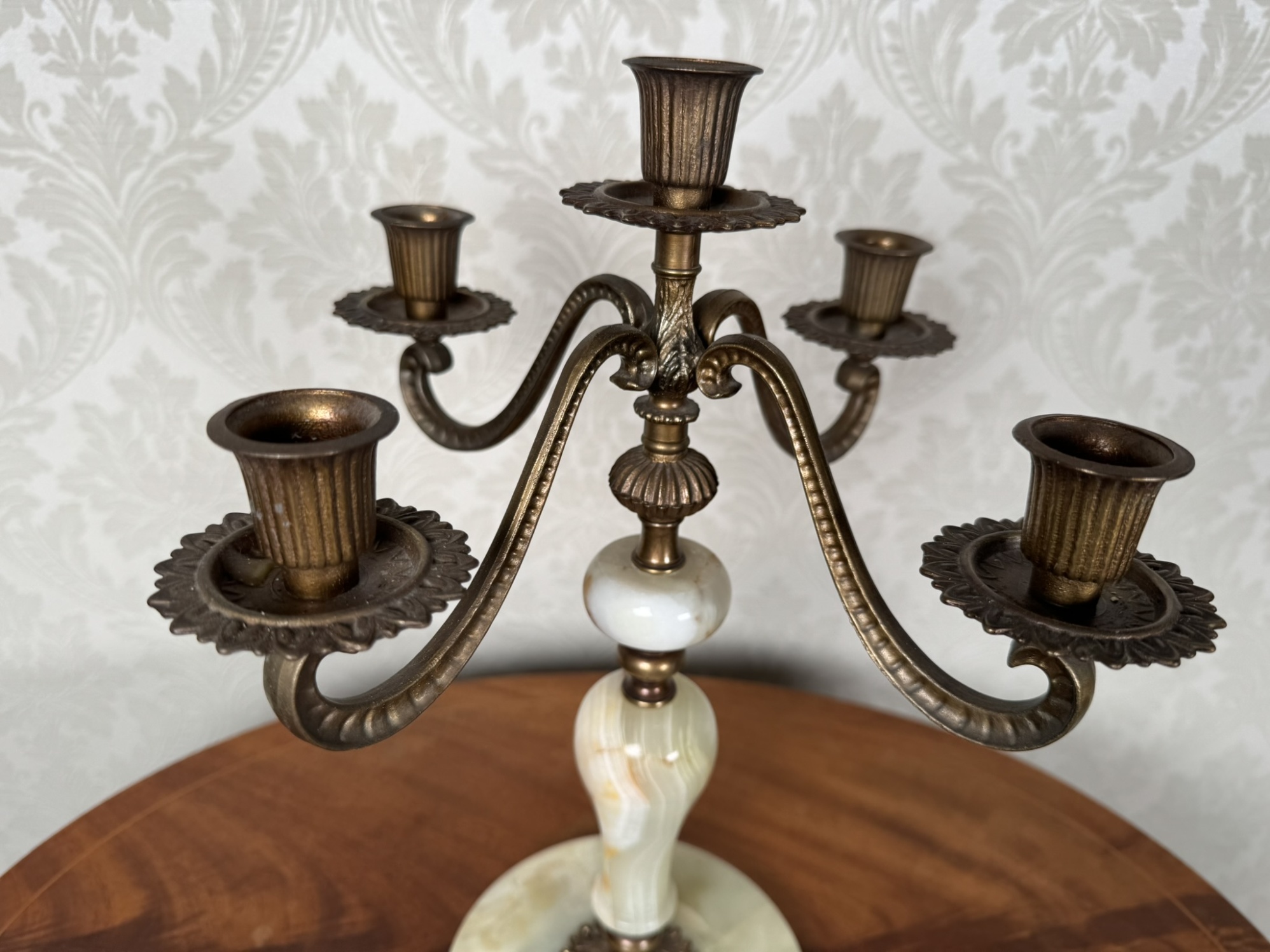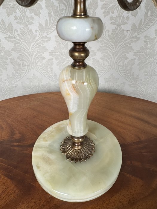Luxusní mosazný dvouramenný svícen na onyxovém podstavci