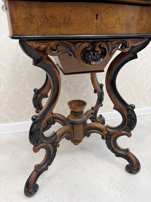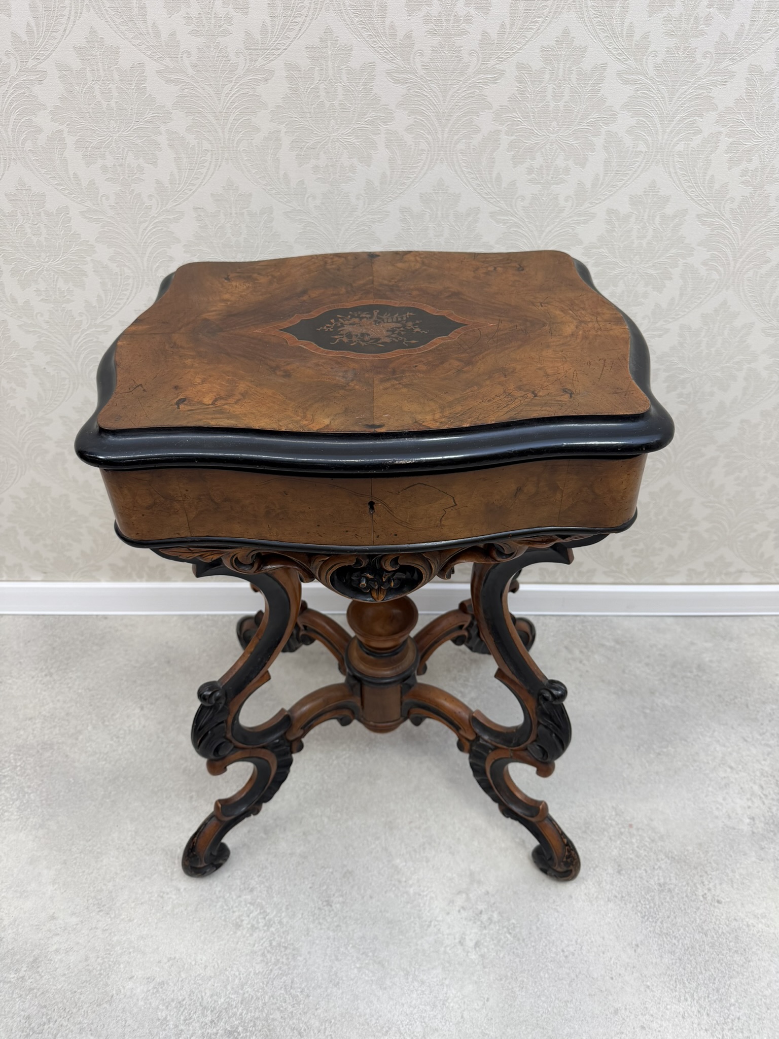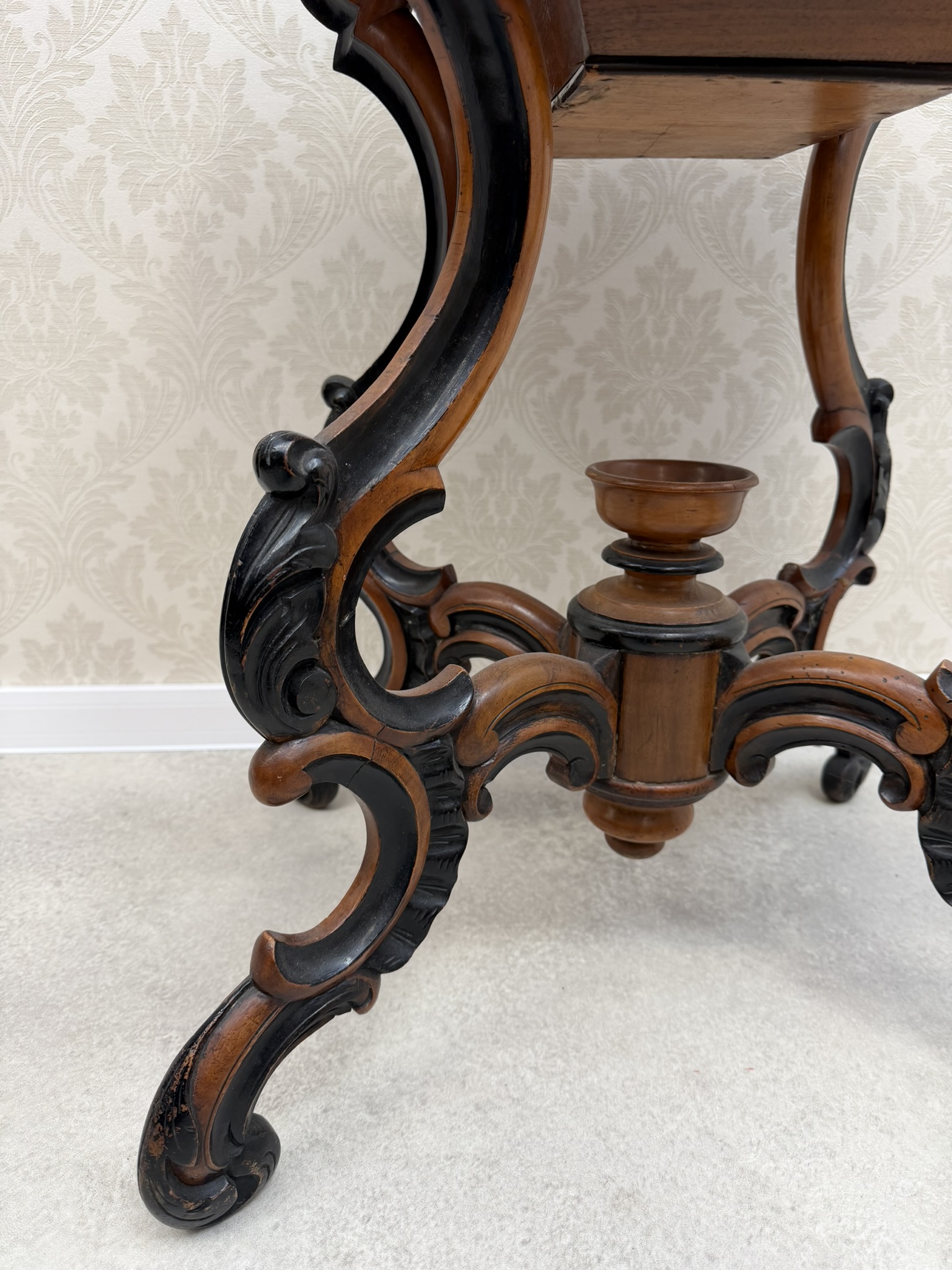 Luxusní dřevěný stolek na elegantně řezaném podstavci, r.1860 - e011