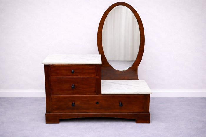 Toaletní stolek s oválným zrcadlem a mramorovými deskami, styl První republika - u118